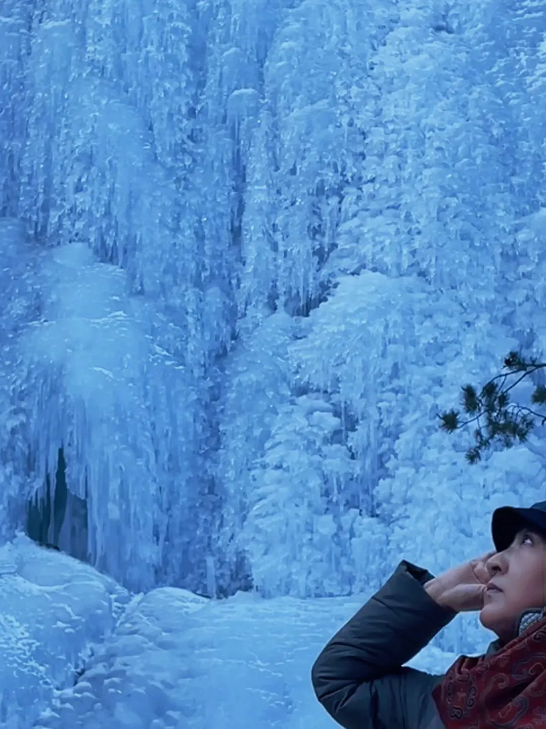 1. 主冰瀑前:站在冰瀑正前方,以整个冰墙为背景,仰拍能最大限度展现冰瀑的宏伟。