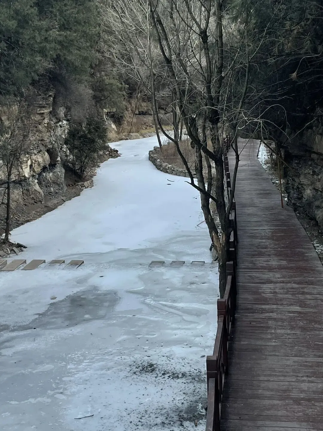• 冰河漫步:沿着木栈道前行,脚下的冰面泛着细碎的光斑,身旁的冰挂不时有水滴落下,在寂静的山谷里格外清脆。