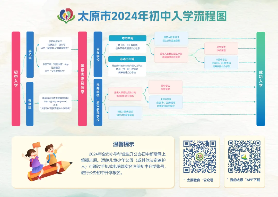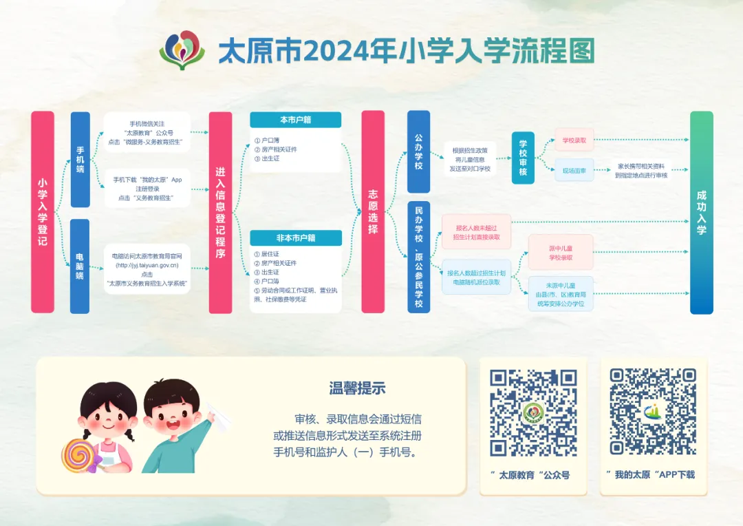 近日,太原市教育局印发了《关于做好2024年全市小学入学登记工作的通知》,就全市小学一年级新生入学登记时间、登记对象、登记方式、需准备的材料等有关事项做出具体部署。