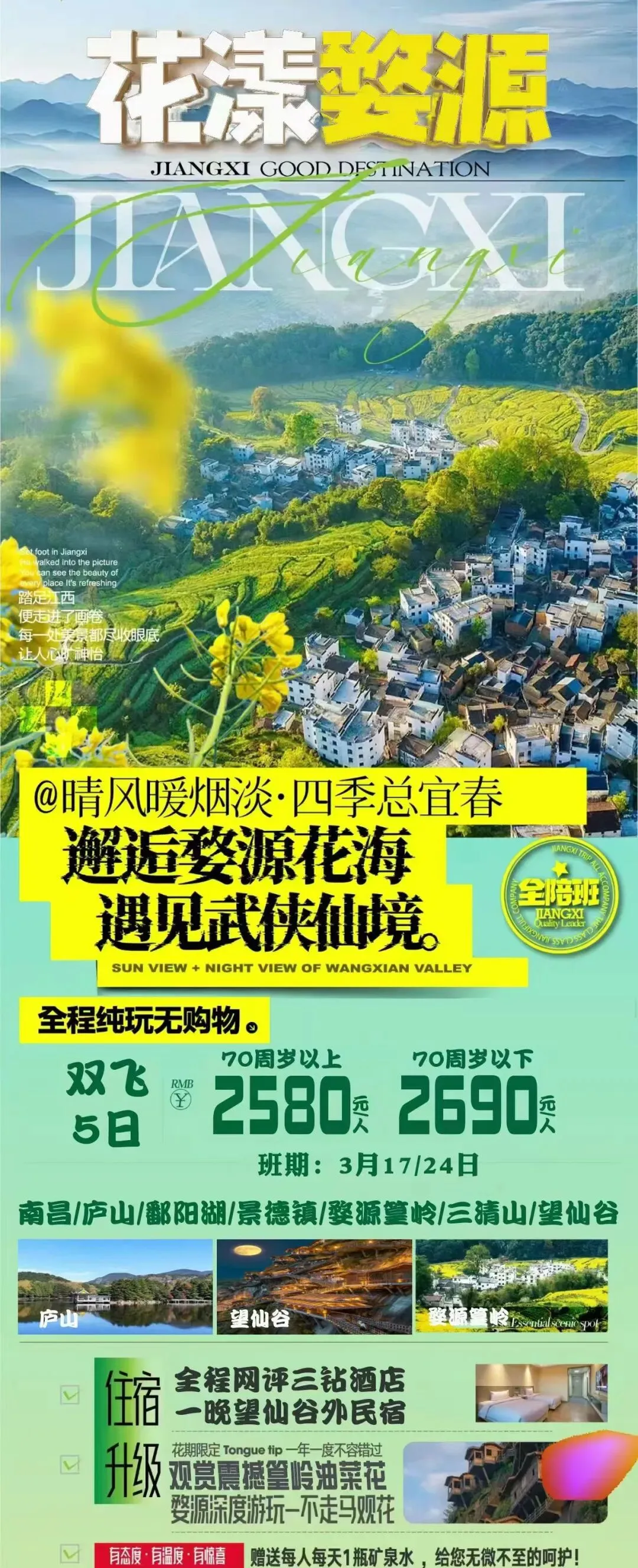 🔥3月17日【花漾婺源】江西双飞5天