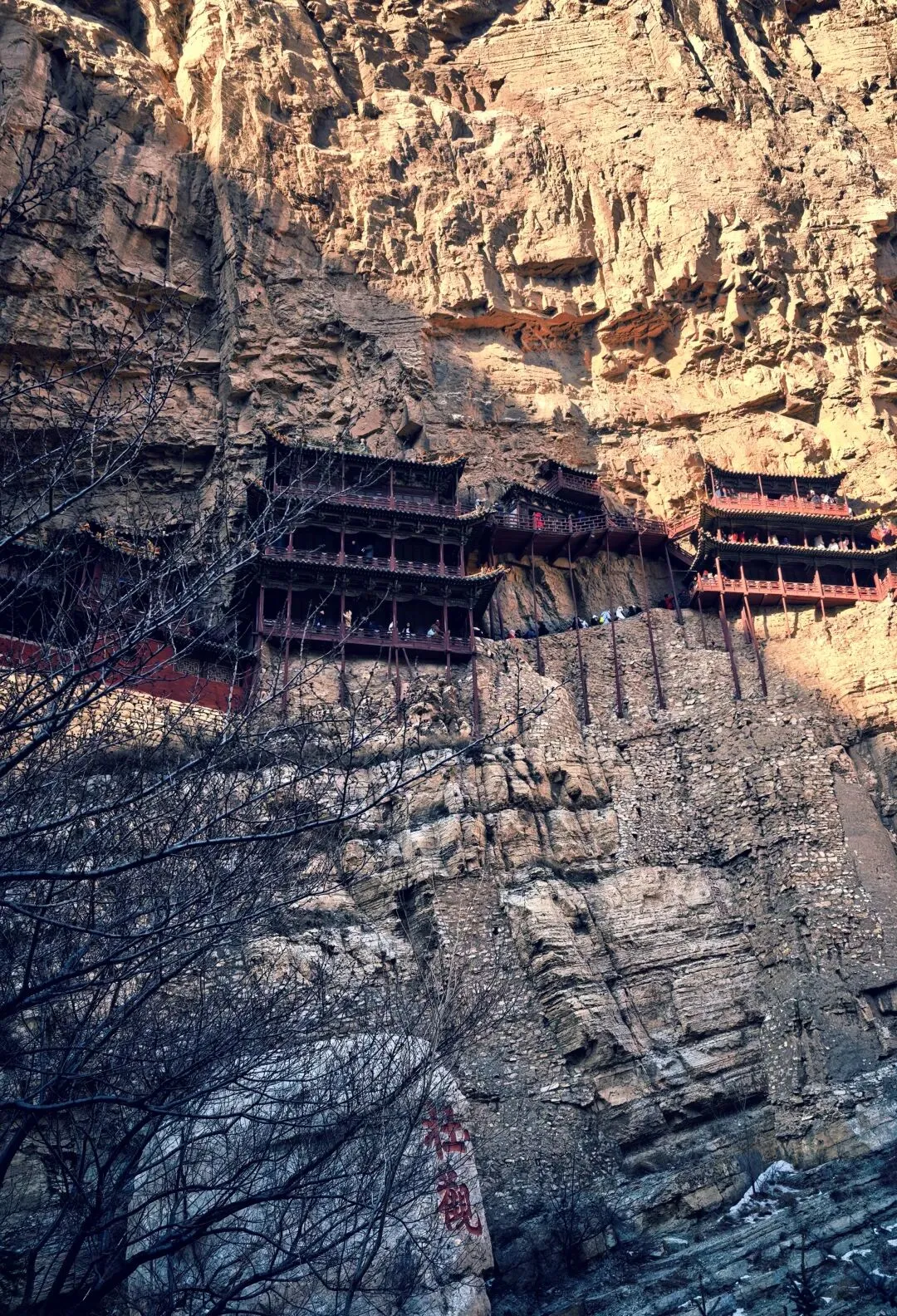 悬空寺“挂”在半山腰。登临时,阶梯唯一人通。待到最高处立于悬崖之上,确是有些心颤的,幸而安很贴心一路牵着护着。(也跟着她拜了一路佛祖,哈哈。)