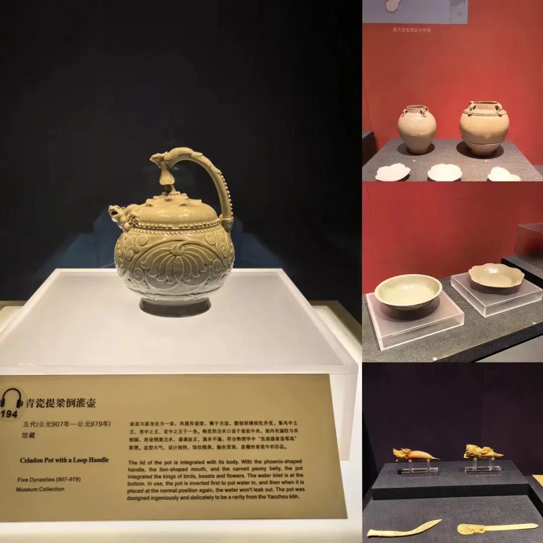 例如陕博设计师是张锦秋,师从梁思成;例如我喜欢的那个纤巧玲珑的玉玺是刘邦皇后的,全国仅此一枚收藏在此馆;又如青瓷倒灌壶是怎么运作而使得翻转过来却水不外流;又如秘色瓷底如水,是权贵象征,古时只有宫廷用得;再如西安凭借其独特的农业富庶、经济发展、天险防御、进退有度等而成为十三朝古都等等…