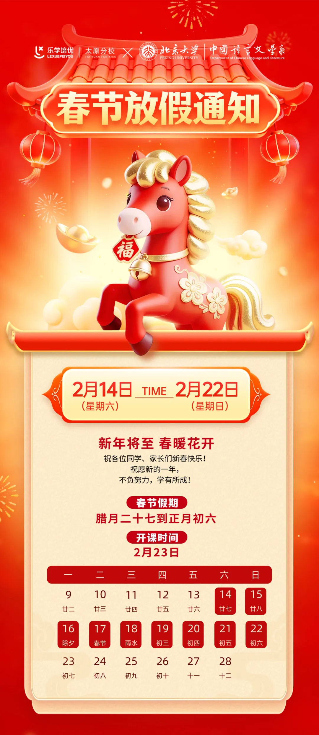 >恭贺新禧|太原乐学培优春节放假通知