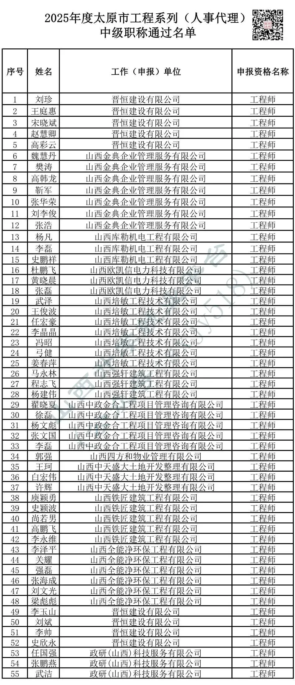 关于2025年度太原市工程系列(人事代理)中级职称评审结果的公示