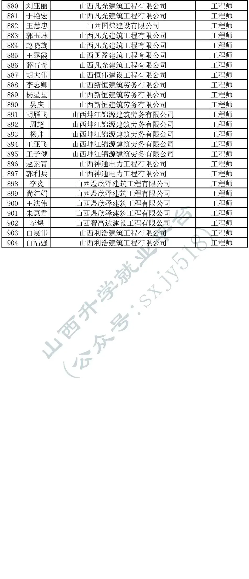 现将刘珍等904名同志具备中级工程师职称名单予以公示,公示期:2026年2月13日—2026年2月26日。如有意见或问题,须在公示期内,以电话、电子邮件、信函等形式向太原市人力资源服务行业协会反映情况(信函以到达日邮戳为准)。反映情况须客观真实,以单位名义反映情况的材料需加盖单位公章,以个人名义反映情况的材料应署实名并提供有效联系方式。