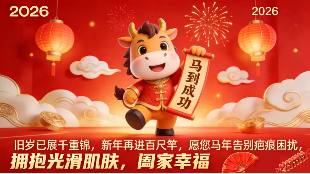 旧岁已展千重锦,新年再进百尺竿。愿您在马年里,告别疤痕困扰,拥抱光滑肌肤,阖家幸福,马到安康!