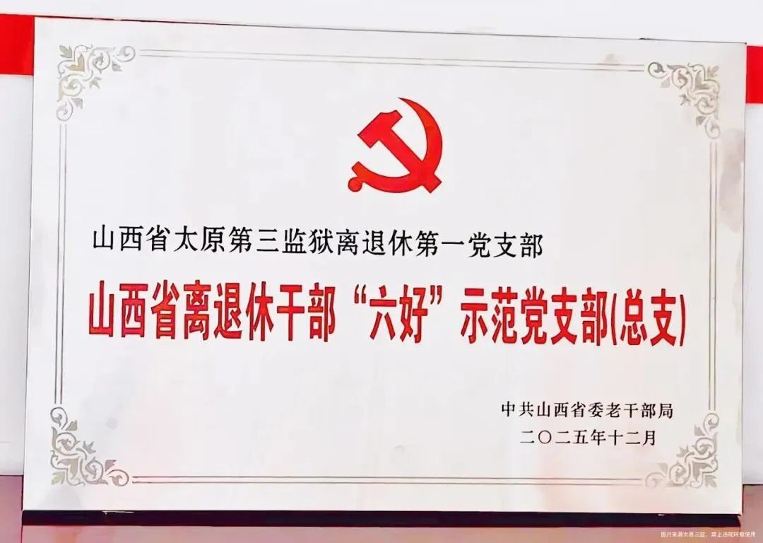 近期,中共山西省委老干部局印发《关于命名2025年度山西省离退休干部“六好”示范党支部(总支)的通报》,山西省太原第三监狱离退休第一党支部荣获山西省离退休干部“六好”示范党支部(总支)荣誉,这既是对太原三监离退休党建工作的充分肯定,也是该示范党支部强基固本、实干争先的生动体现。