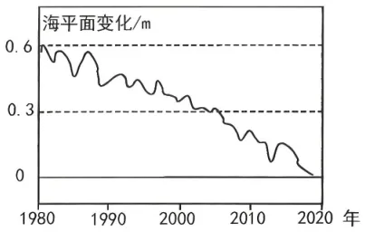 12.结合图示1980~2020年该站点海平面相对变化,推测其主要驱动因素是