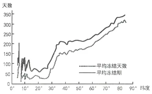 15.北半球高纬地区土壤平均冻结期与平均冻结天数差异较小,主要因为冻结期内