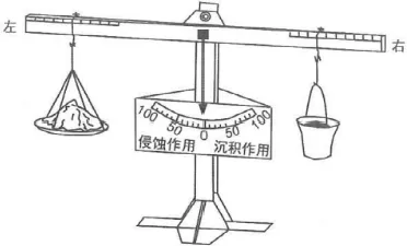 为探究坡度变化对河流沉积作用和侵蚀作用的影响,某地理研究小组设计了理想化天平实验装置(如下图),用于演示河流沉积作用和侵蚀作用过程。天平横杆上的刻度表示河流坡降(右)与泥沙粒度(左)的大小。