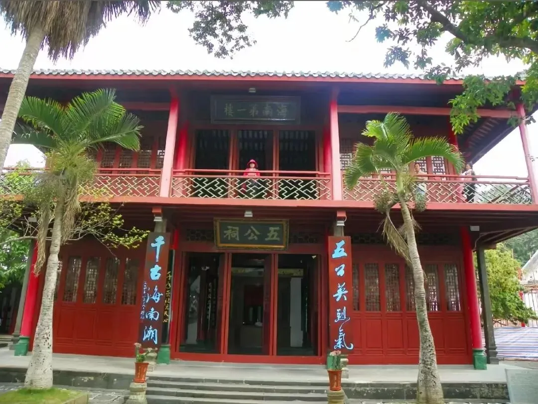 踏过海口红城湖路的喧嚣,一堵黛色围墙忽然横亘眼前,将市井烟火轻轻隔断。门楣上,“五公祠”三字隶书古朴,檐角垂落的铜铃在微风中轻唱,像是在邀约访客踏入一段尘封的岁月。