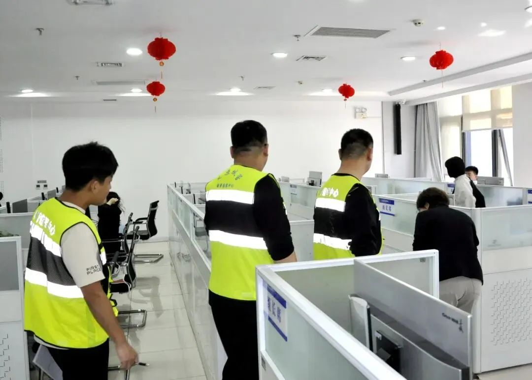 检查组坚持问题导向,在中心业务大厅对坐席集中区域电源布设及电器使用情况,按照安全用电标准仔细排查隐患;走进设备机房,检查大屏幕区域设备运行情况,检点网线电缆安全布设,确认配备消防器材在有效期内,并认真查看翻阅运行维护记录台账。在行政办公区,检查组逐一排查各科室办公设备运行情况,要求职工们在放假离开前拔掉插头关闭电器切断电源。检查组还深入中心其他办公用地(原城管局培训中心办公区域),聚焦消防、用电、设施设备存放等重点环节,开展全方位排查,发现问题,及时记录并整改。
