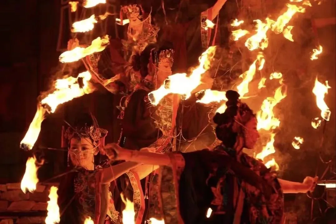 白天看舞龙舞狮、机甲巡游、晋剧展演;晚上18:35亮灯,40米福塔花瀑搭配百组大型花灯秀,登城墙俯瞰整片灯海,随手都是古风大片!还有“风火流星”表演;可谓非遗版“火焰秀”,用铁链甩动燃烧的“流星”,火光划破夜空,形成流动的光轨,震撼到失语!