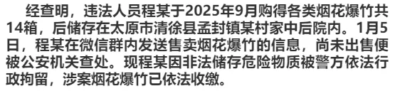 >太原一地警方查处一起非法储存烟花爆竹案件