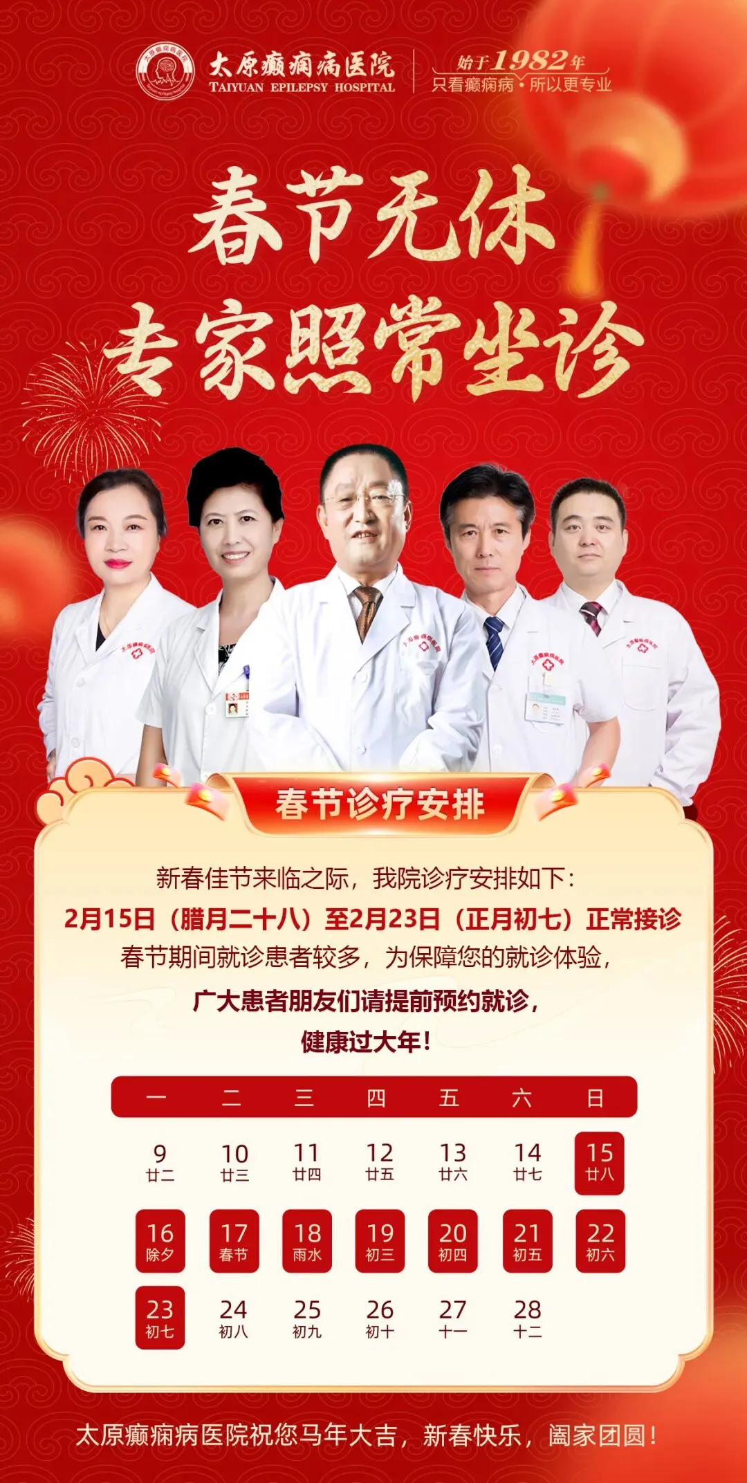 在这个充满温馨与团圆的春节,太原癫痫病医院的医护人员将恪守岗位,始终为癫痫患者提供不间断的关怀与支持。