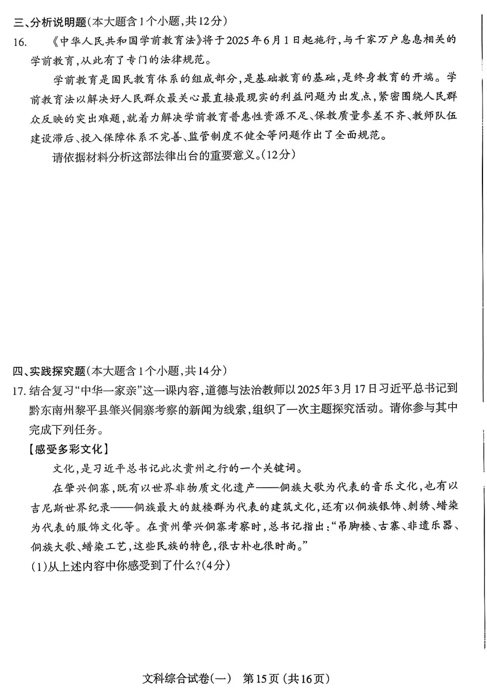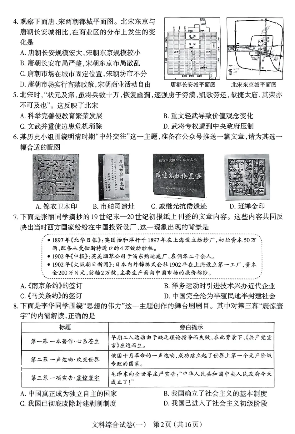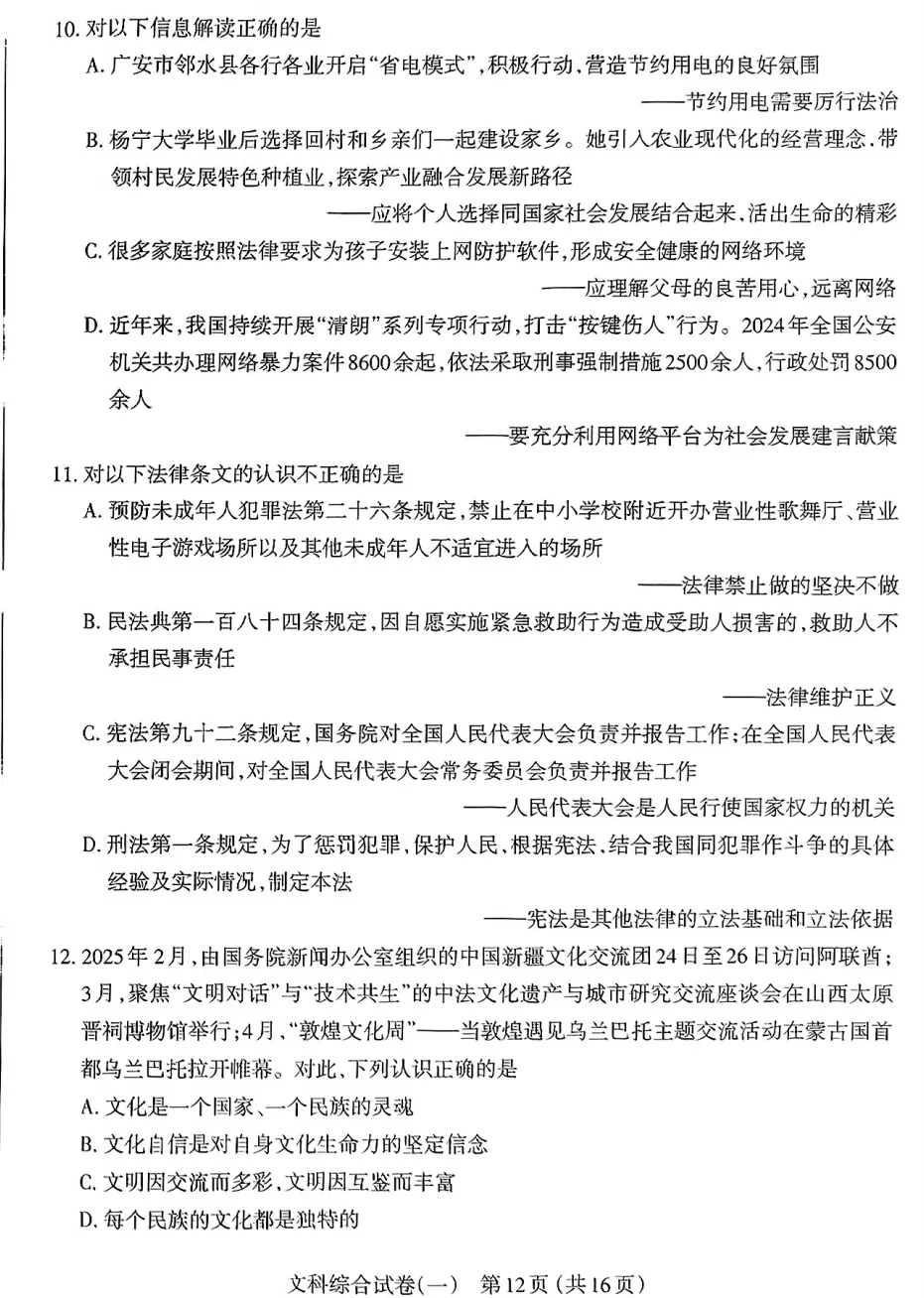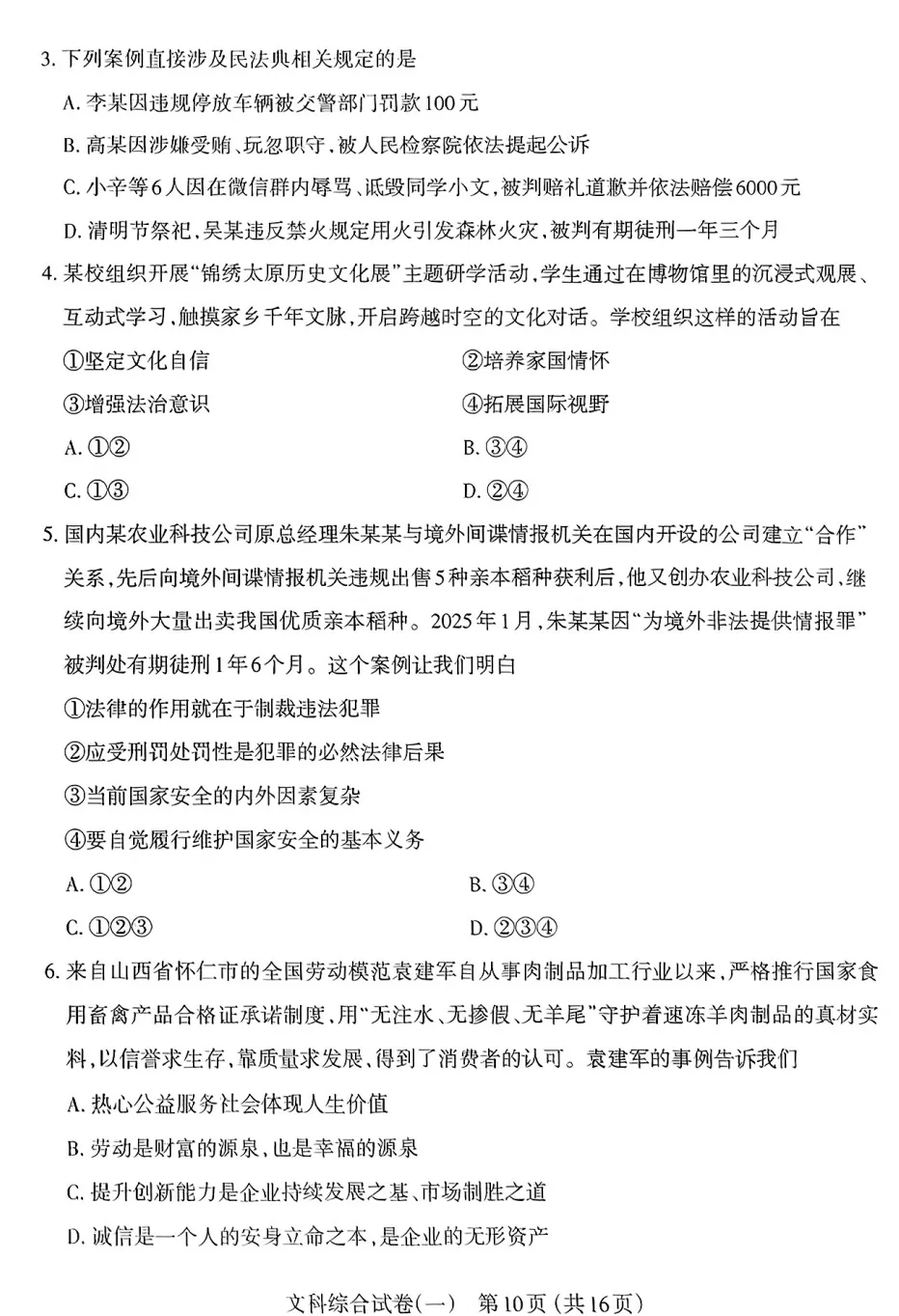 >【初三生•每日一卷】太原市2025年初中学业水平模拟考试(一)-文综