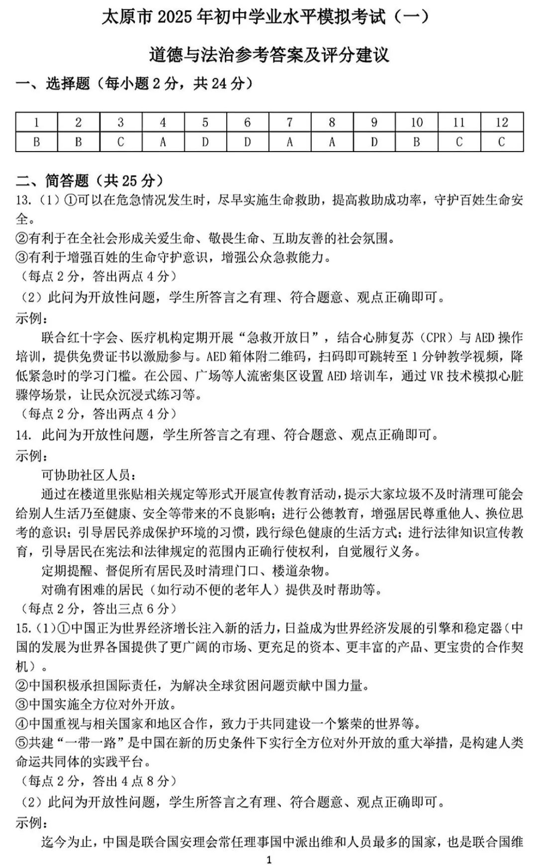 【初三生•每日一卷】太原市2025年初中学业水平模拟考试(一)-文综