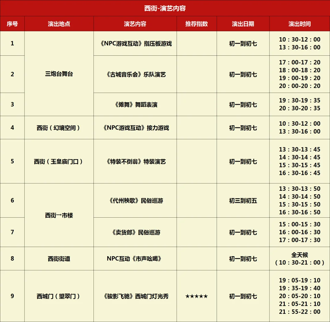 太原古城初一至初七演出节目单