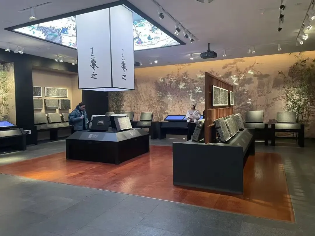 在这里,可以看到晋唐书圣的核心作品碑刻,比如王羲之和王献之的兰亭序,快雪时晴帖、中秋帖、鸭头丸贴等碑刻,还有好多唐代名家,包括欧阳询、虞世南、褚遂良、颜真卿等大家的楷书作品,还有张旭、怀素的狂草作品,甚至李世民、李治等帝王的书法作品都用碑刻保留下来。还有宋世佳的一些作品,包括苏轼、黄庭坚、米芾、蔡襄的行草代表作品。我在这里看到了苏东坡写的《念奴娇·赤壁怀古》的作品,他书写自己的诗词和书法。看到了这幅作品,我也是心情震荡。东坡先生说:“久不作草书,适乘醉走笔,觉酒气勃勃,似指端出也”。这份醉草真本没有流传至今,目前只有摹本和碑刻,这份碑刻可以看到一些神韵,与日常的行书风格差异比较大,但跟这首词非常贴切。