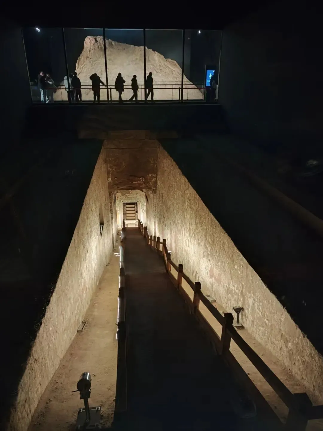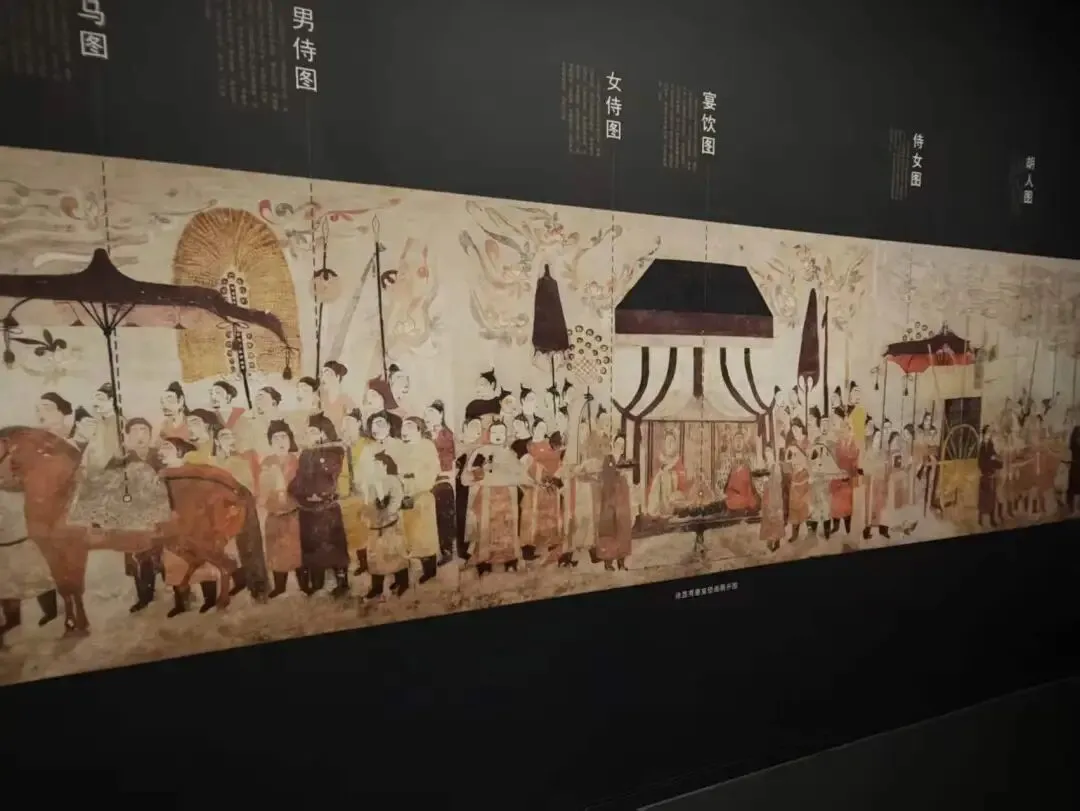 这里的壁画被视为是北齐绘画巅峰之作,让人最印象最深刻的就是有非常明显的胡汉风格。它既有中原传统的一些内容,也有西域新风。徐显秀本就是鲜卑勋贵,它壁画中有鞍马出行图、宴乐图、仪仗图等,出现胡商、联珠纹、高鼻深目人物,反映当时太原作为丝路节点的文化交融。透过玻璃幕墙还可以直视徐显秀墓墓道、甬道、墓室,这也让人对那个时代的生死观念有真切的感受,但我还有一点想法,那就是:无论秦始皇还是北齐武安王,都是追求把把生前的身份、权力、享受,全部复制到地下,生生世世都想成为这片土地的主人,其他人都是陪衬、附庸。