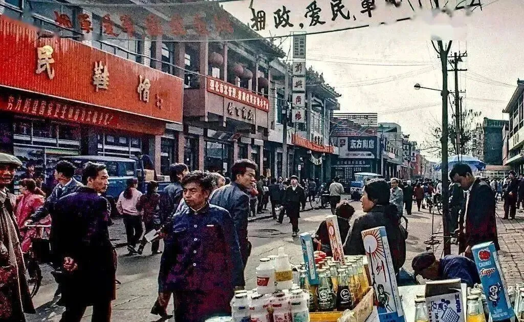 这条街就是那会儿的主轴,商厦牌匾一溜红漆,门口摆满汽水玻璃瓶,北冰洋、瓯柑汽儿、山楂罐头排成队,摊主吆喝一句“来两瓶儿不”,我爸说快走快走,别老盯着汽水看,留着钱买袜子。