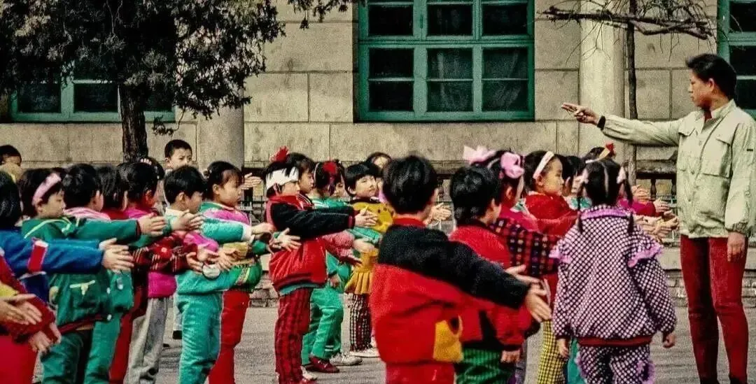 这一排小棉袄就是早操队,老师胳膊直直地指过去,孩子们手臂平平地抬起来,花格子裤配彩头绳,口号不齐但劲头足,放学路上我还学着摆胳膊,奶奶笑说你这步子像踩缝纫机。