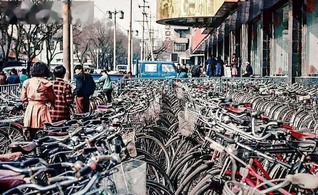 这片密密匝匝的钢圈就是车海,前梁上捆着弹簧坐垫,车把胶套磨得发亮,锁头串成一排咔哒咔哒响,找车最考眼力,一眼认辩后座那条红布带儿,不小心就牵错,人家一喊“哎同志”,你脸刷地就红了。