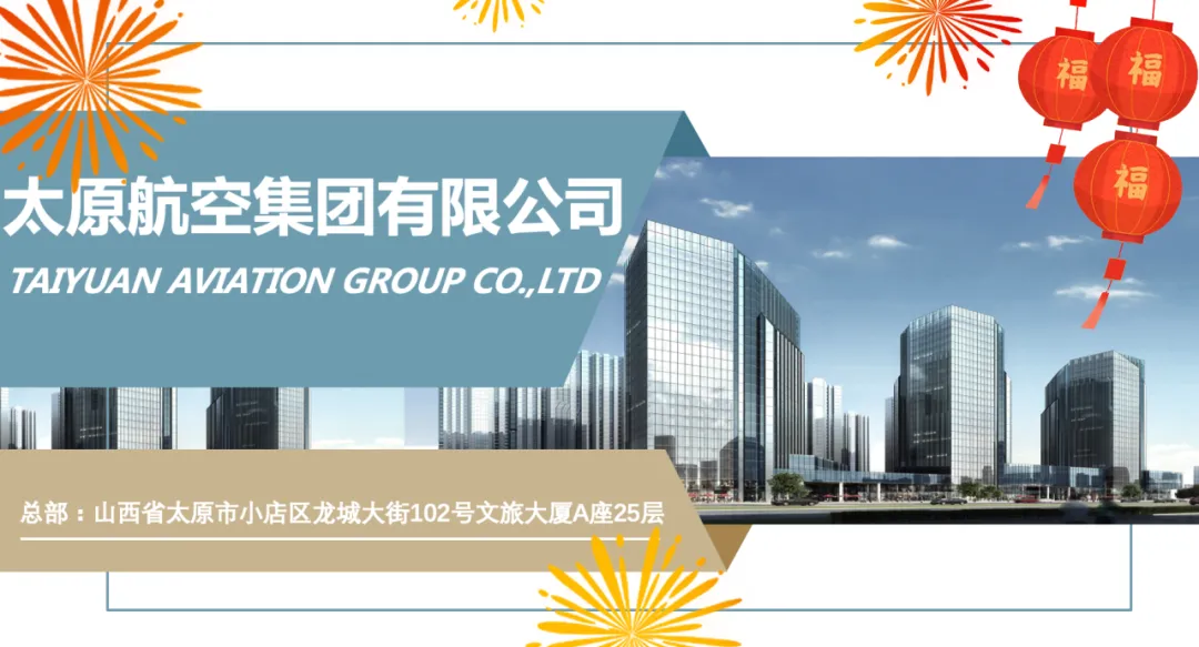 岁律更新,春信已至。值此除夕良辰,太原航空集团向关心支持集团发展的各级领导、合作伙伴,致以最诚挚的感谢!向坚守在各条战线的全体员工及默默奉献的家属,致以最崇高的敬意!向社会各界朋友,送上最温暖的新春祝福!