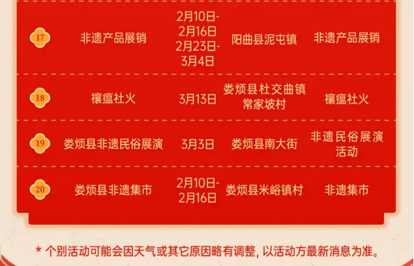 备注:个别活动因天气或其它原因可能略有调整,以实际举办为准!