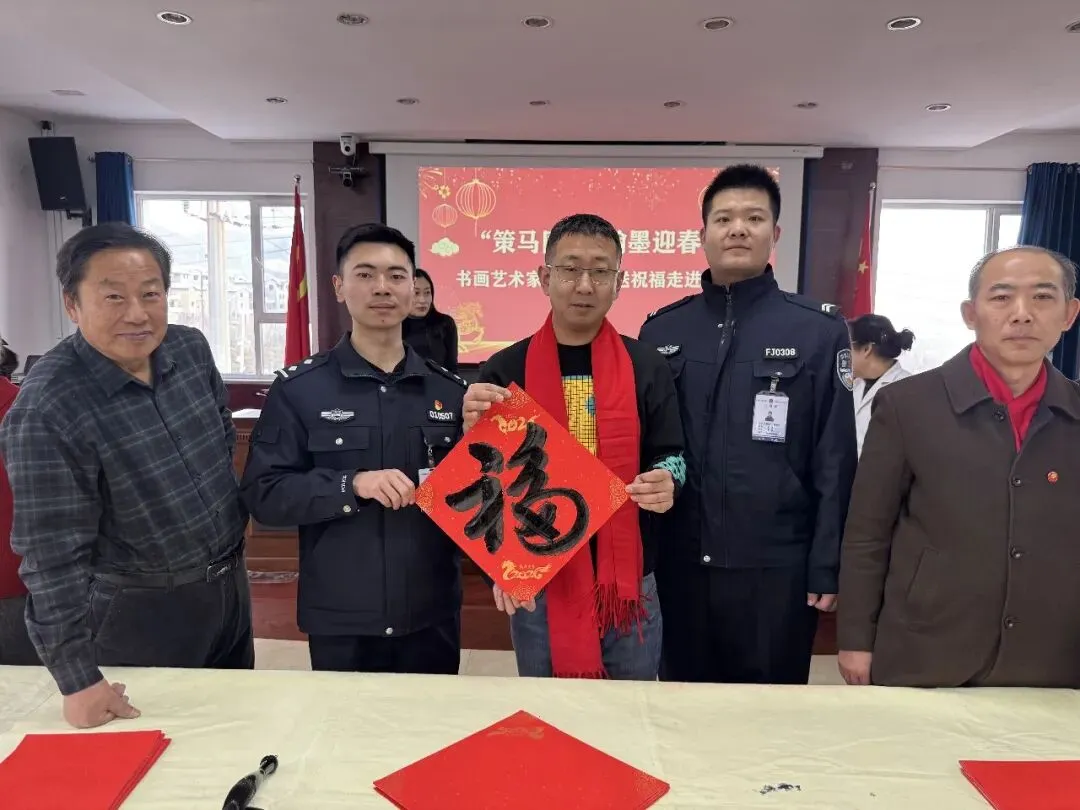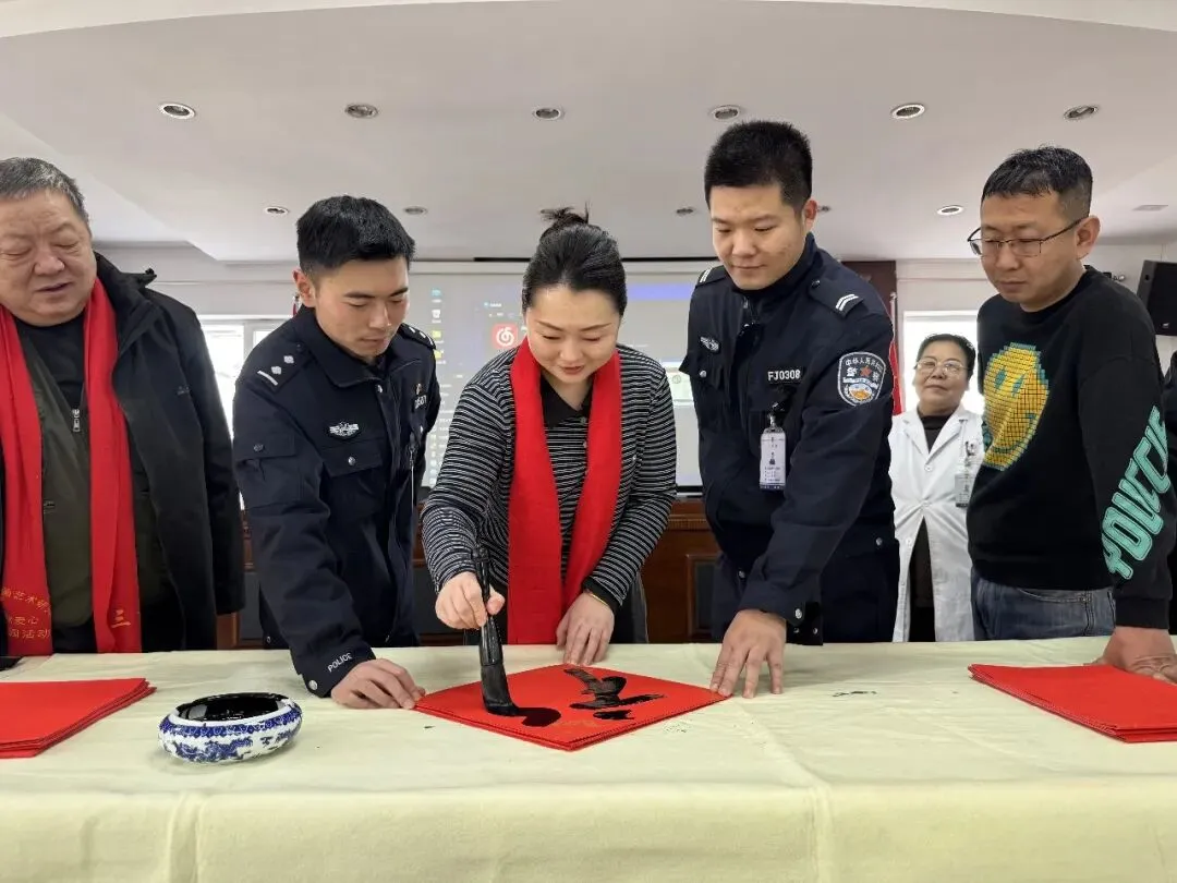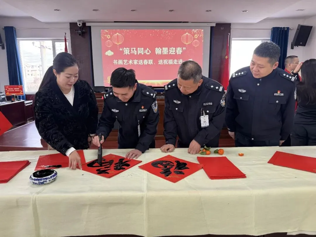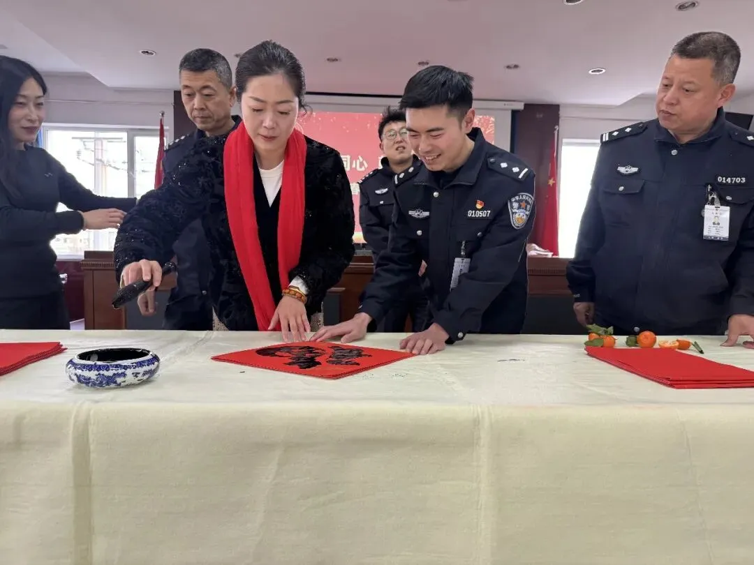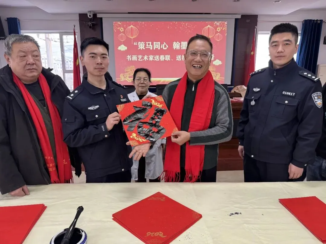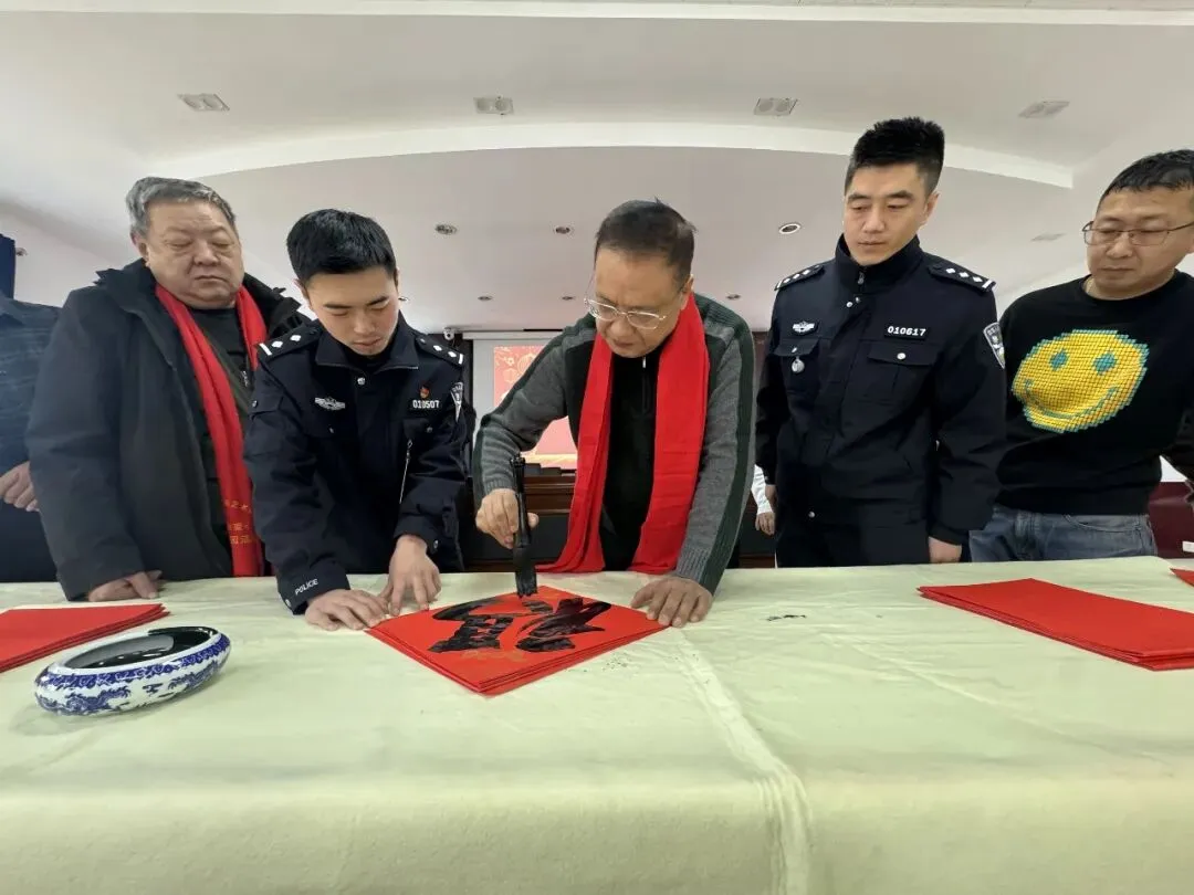 岁序更替,春潮渐涌,在马年新春佳节来临之际,为深入弘扬中华优秀传统文化,传递社会各界对公安队伍的关怀与敬意,活动由山西省政协委员、山西省协会书画专业委员会主席张文生及书画院艺术家高俊、张瑞红、安益成、董福来、师小明、任跃宏、薛通川、李维亮、曹文娟、任倩倩、张如玉、王贵梅等书画艺术家满怀热忱走进警营,以笔墨为媒、以春联为礼,为长期坚守在平安建设一线的民辅警送上浓浓的新春祝福与文化滋养,让墨香浸润警营,让温情凝聚警心。一群心怀公益的书画艺术家走进太原市一看守所,开展“策马同心、翰墨迎春”送春联送祝福活动,以笔墨为媒,将新春的美好期许与人文关怀送到监管民警手中,让特殊场所里也洋溢着浓浓的年味与暖意。