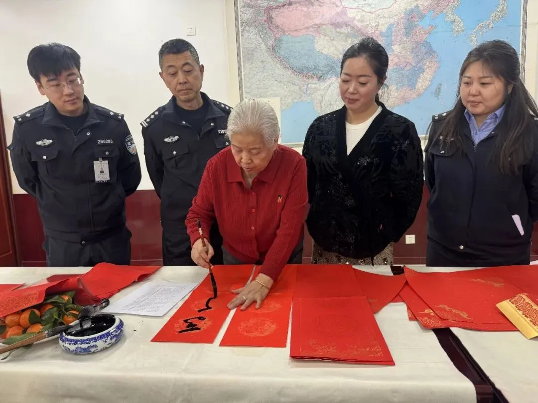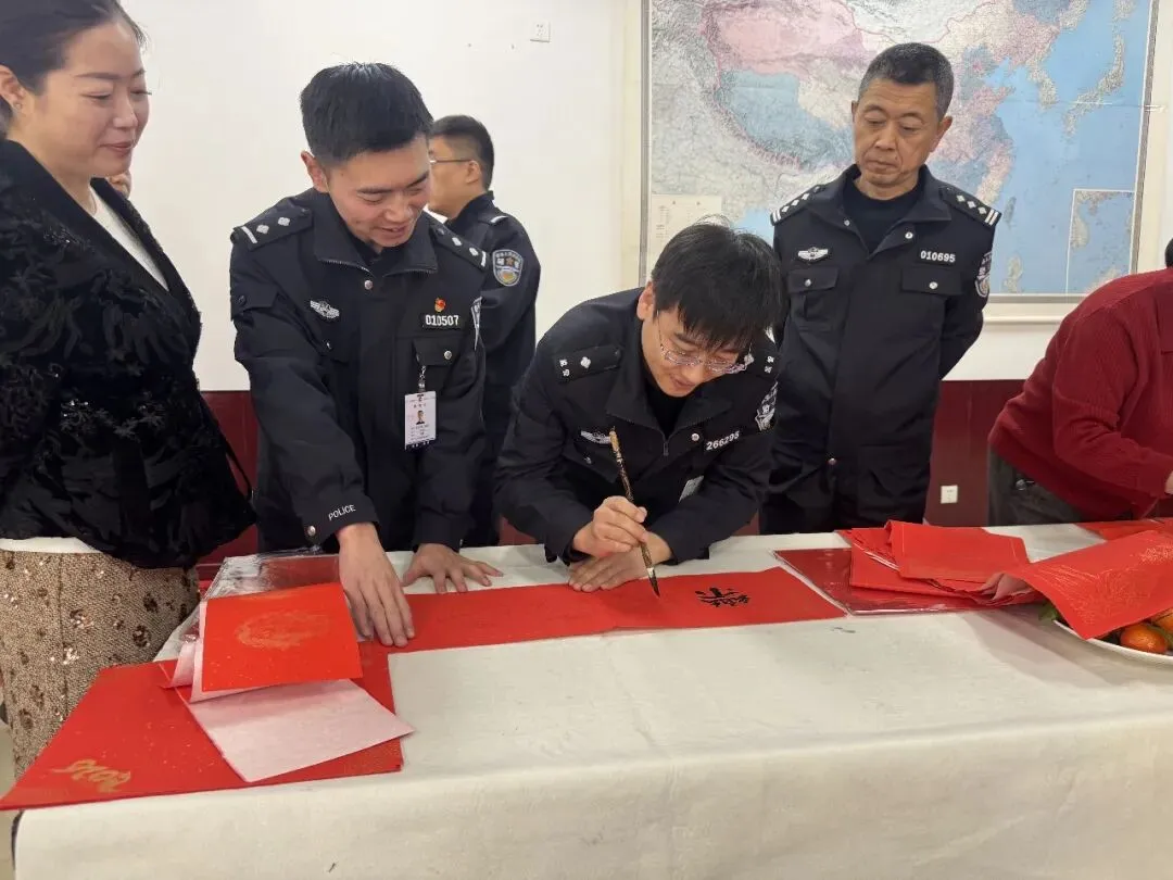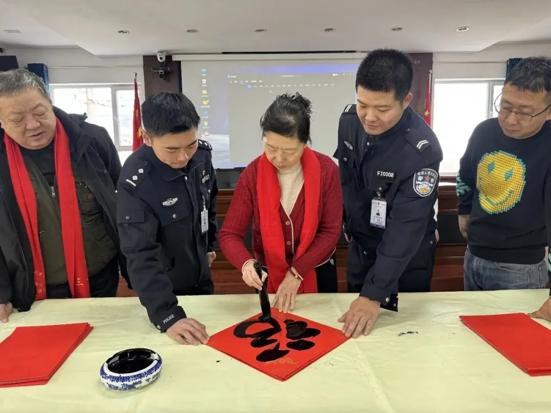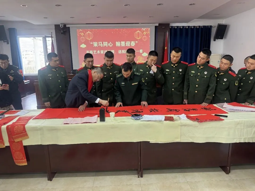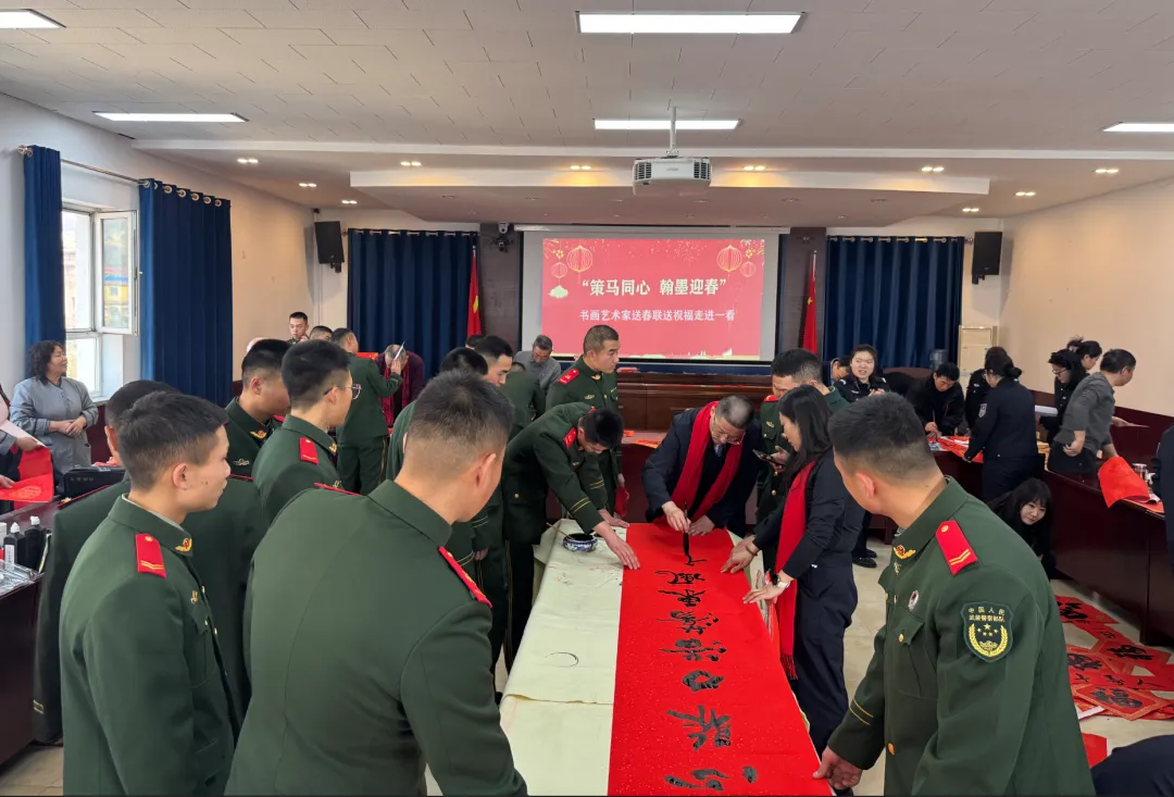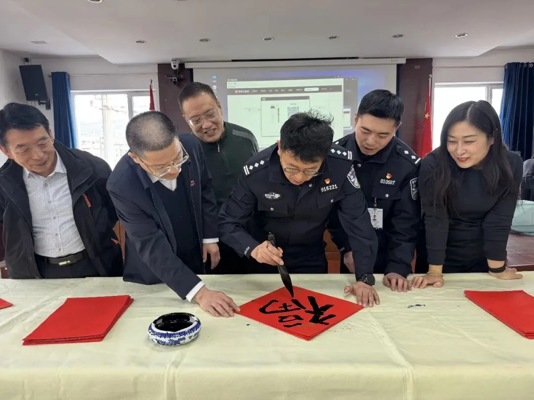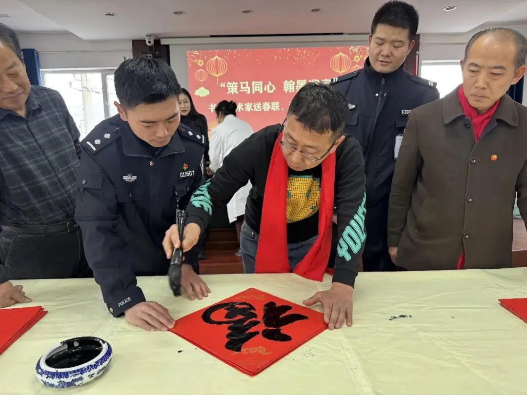 岁序更替,春潮渐涌,在马年新春佳节来临之际,为深入弘扬中华优秀传统文化,传递社会各界对公安队伍的关怀与敬意,活动由山西省政协委员、山西省协会书画专业委员会主席张文生及书画院艺术家高俊、张瑞红、安益成、董福来、师小明、任跃宏、薛通川、李维亮、曹文娟、任倩倩、张如玉、王贵梅等书画艺术家满怀热忱走进警营,以笔墨为媒、以春联为礼,为长期坚守在平安建设一线的民辅警送上浓浓的新春祝福与文化滋养,让墨香浸润警营,让温情凝聚警心。一群心怀公益的书画艺术家走进太原市一看守所,开展“策马同心、翰墨迎春”送春联送祝福活动,以笔墨为媒,将新春的美好期许与人文关怀送到监管民警手中,让特殊场所里也洋溢着浓浓的年味与暖意。