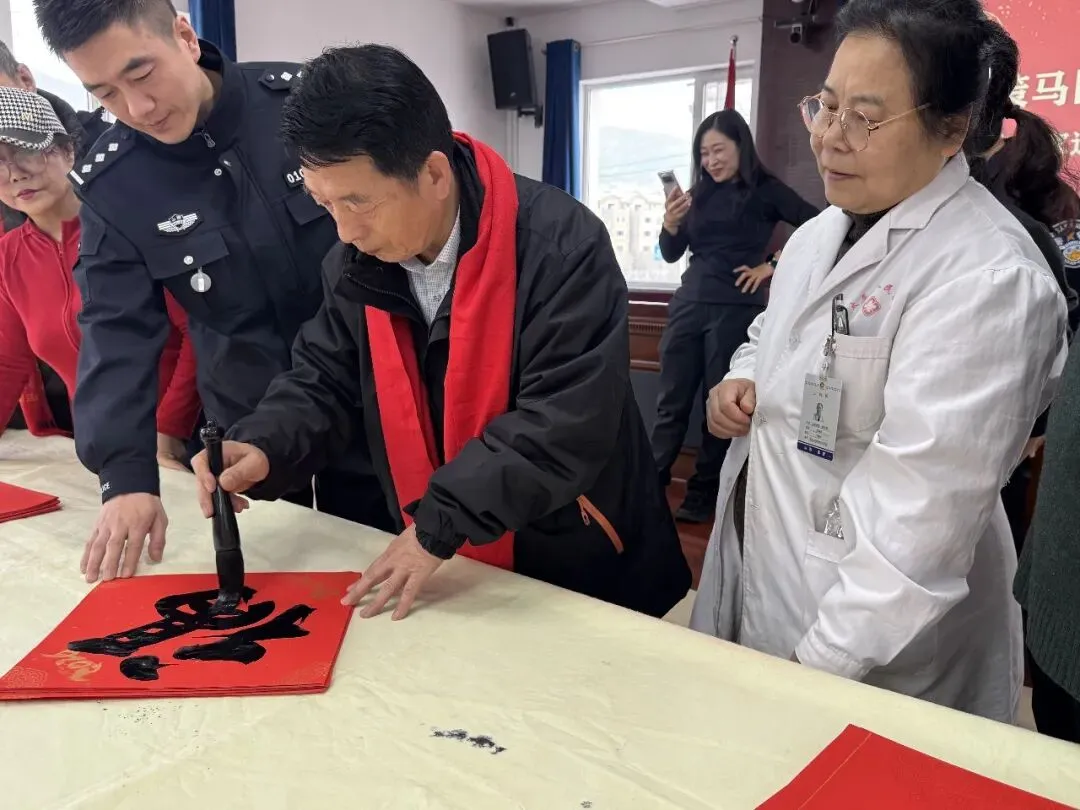 活动现场,墨香四溢、暖意融融。书画艺术家们铺纸研墨、挥毫泼墨,笔走龙蛇间,一幅幅兼具马年特色与美好寓意的春联跃然红纸上。“骏马奔腾开胜景,春风浩荡展宏图”“策马扬鞭行正道,凝心向善赴新程”“马步青云腾瑞气,门迎紫气纳千祥”,一句句吉祥喜庆的联语,一笔笔苍劲有力的笔墨,既饱含着对马年顺遂、平安喜乐的美好祝愿,也寄托着对监管民警坚守岗位、履职尽责的敬意,更传递着对在押人员迷途知返、重塑新生的期许,隶、楷、行等多种书体交替呈现,尽显书法艺术的独特魅力。
