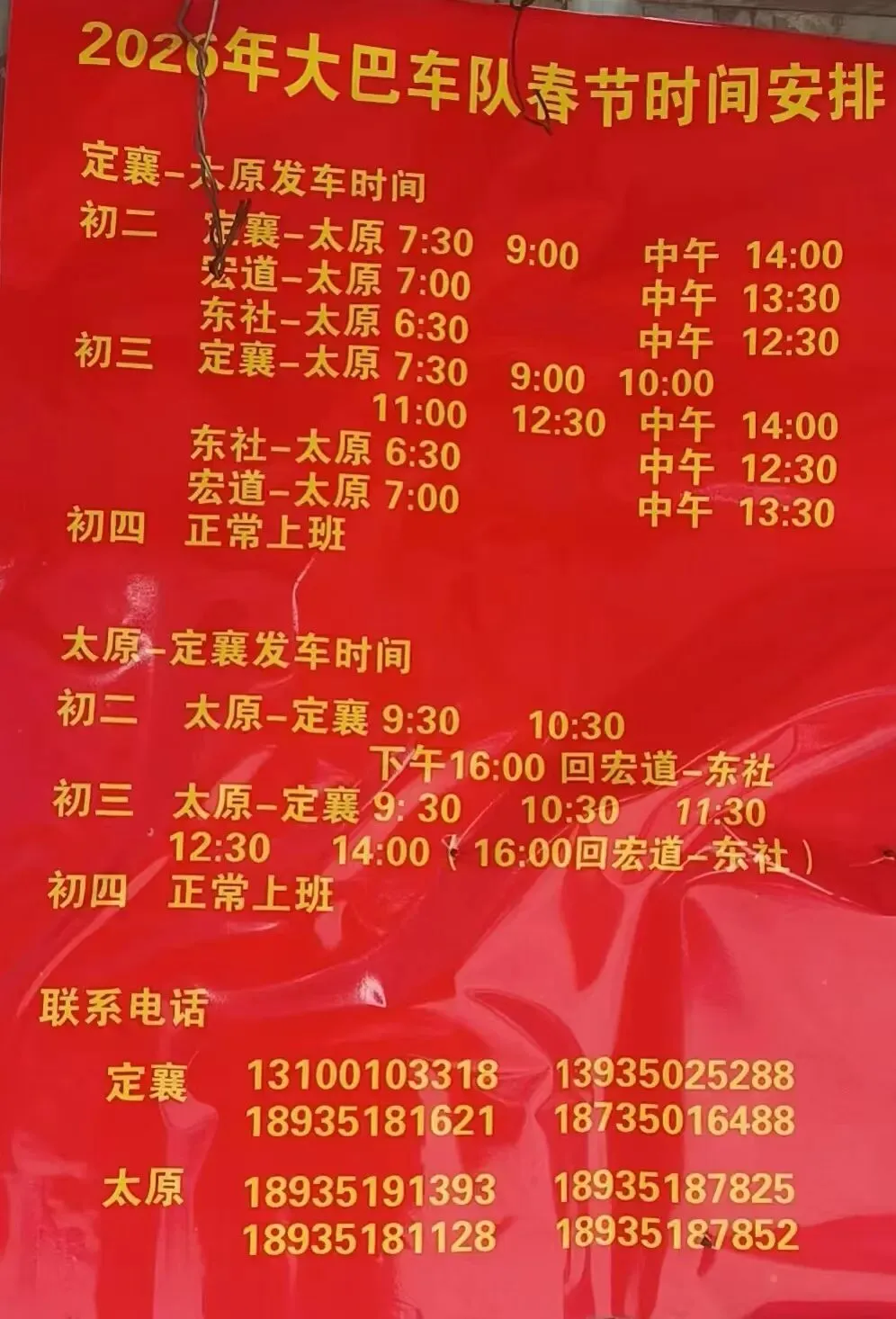 >定襄⇌太原2026年大巴车队春节时间安排公布