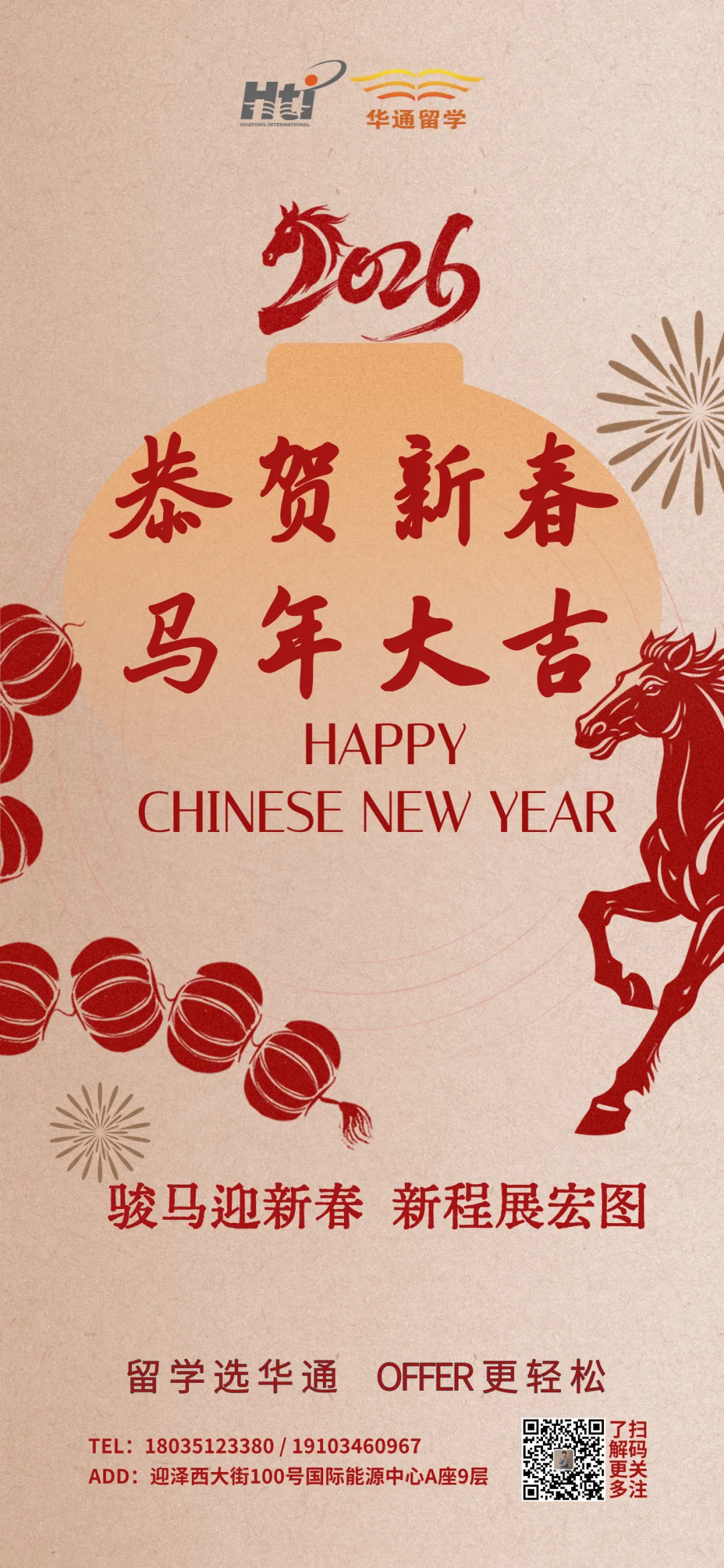 >太原华通留学,祝大家春节快乐,马年大吉!