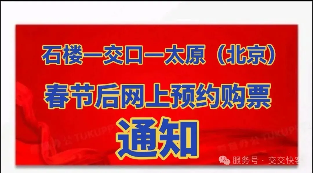 大家好!为方便大家提前规划春节后的出行,为避免线下购票拥堵,本车队推荐旅客优先线上“微信搜索交交快客公众号”渠道购票,随时随地一键下单。旅客可以根据预售期和行程规划,提前查询班次、票价等信息,合理安排购票时间,错峰购票、错峰出行,避开高峰时段,避免耽误行程。交交快客即日起开启春节后15天内车票预售 。