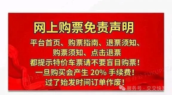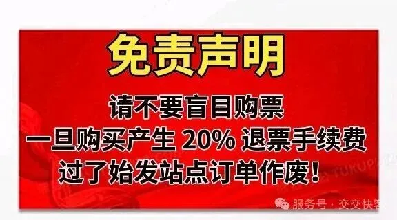 请大家规划好行程再预购车票,不要盲目购买,一旦购买成功后就会产生20%退票手续费,过了始发时间影响二次销售订单作废不予退款!