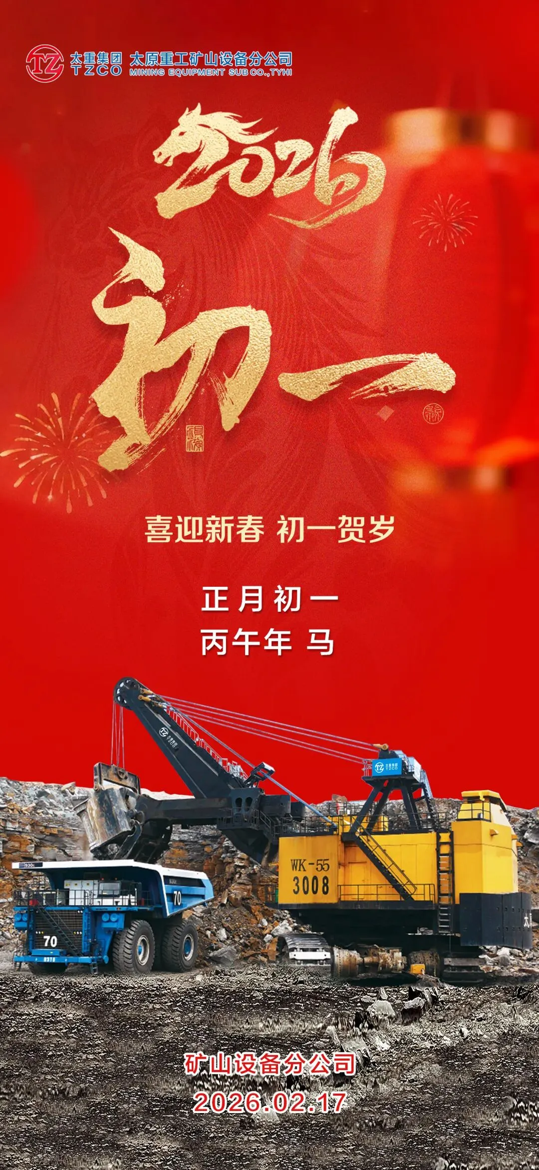 >大年初一 :太原重工矿山设备分公司恭祝全体职工及家属新春快乐,阖家安康!