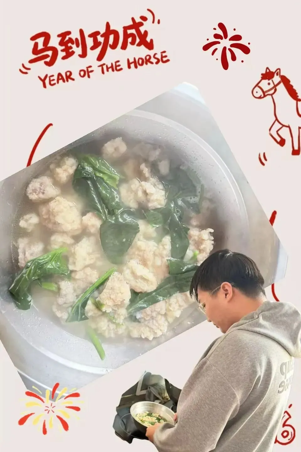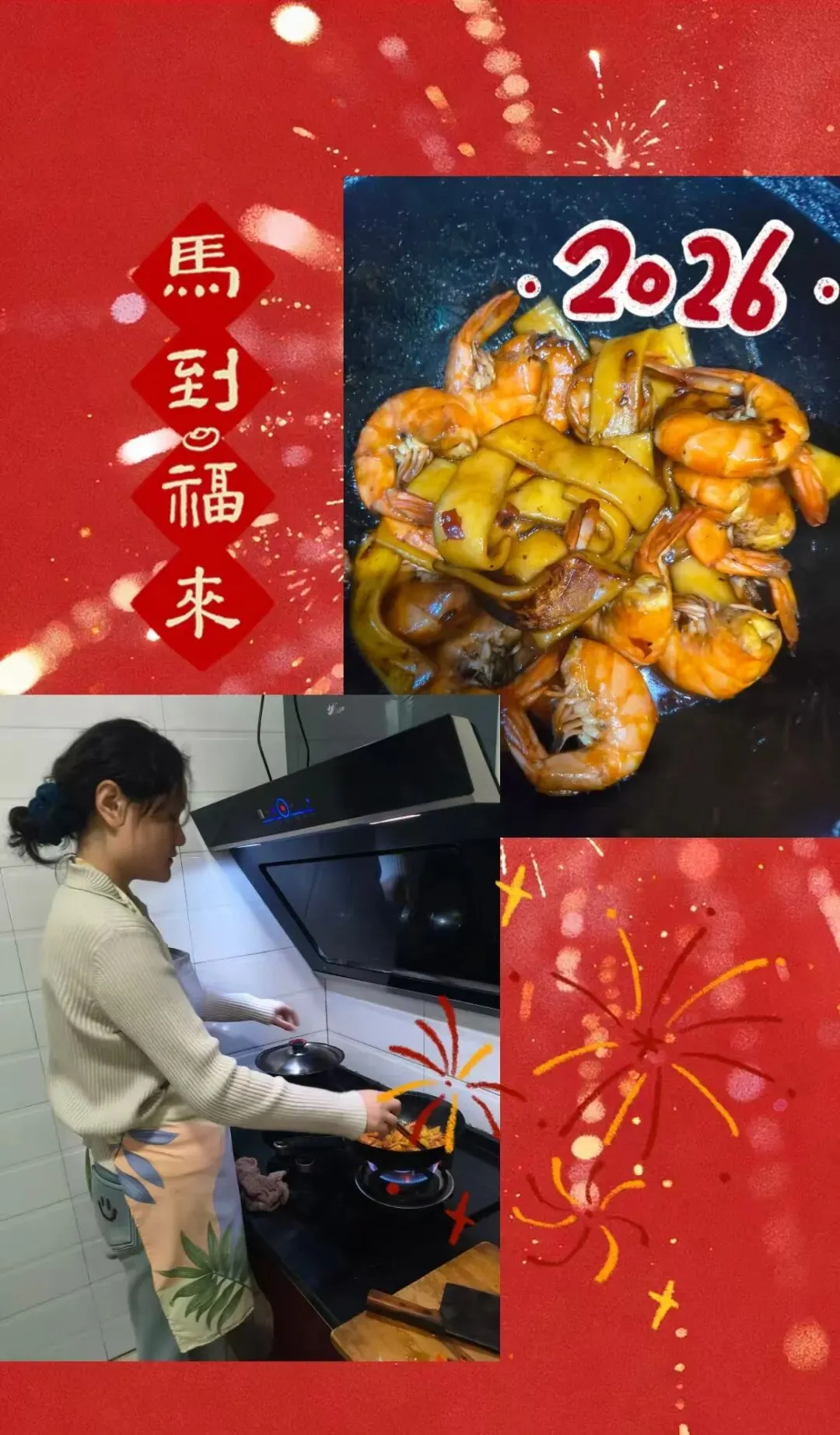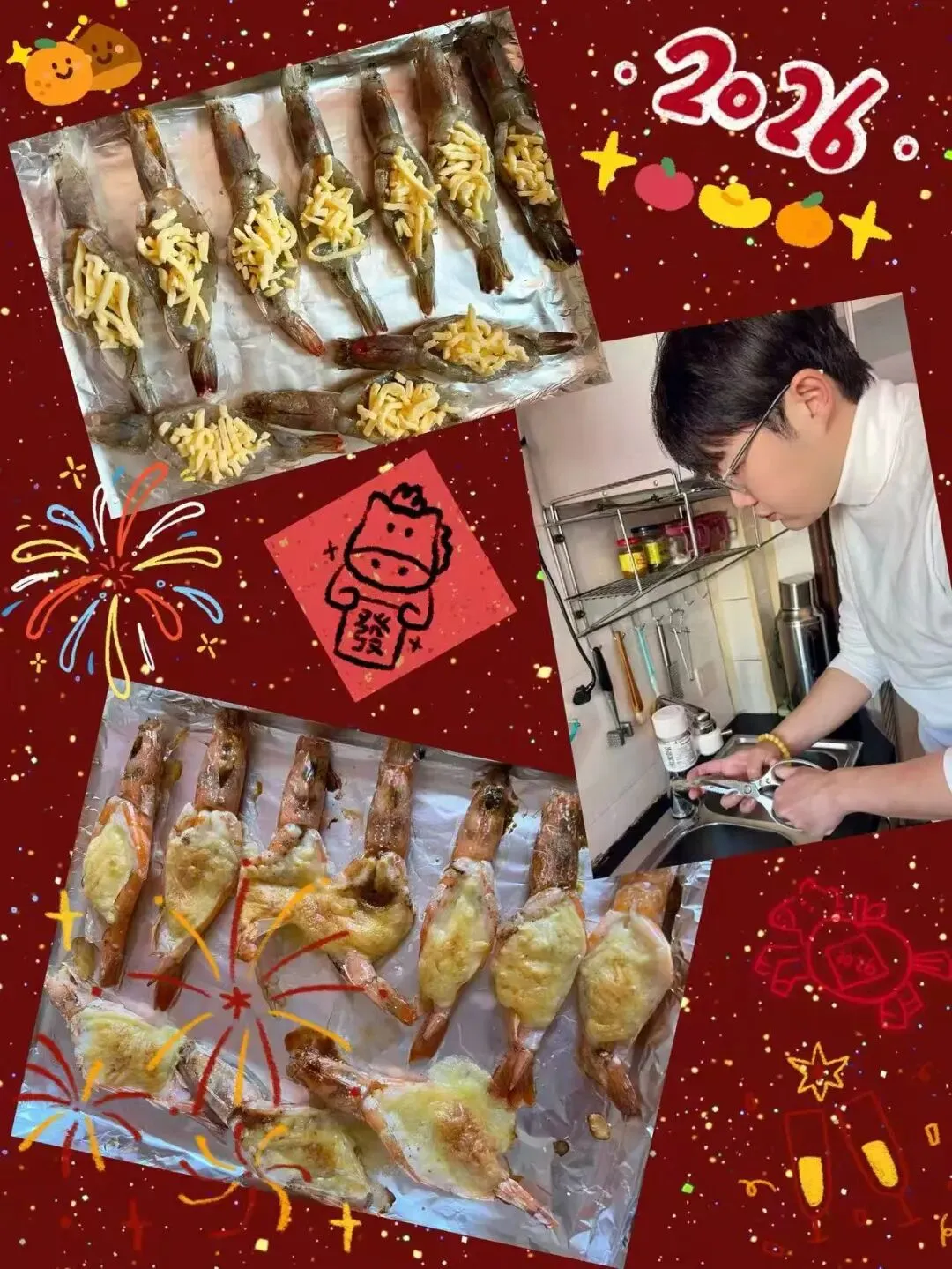 虾寓意“节节高升、红红火火”,芝士象征团圆美满、甜蜜绵长,这道菜不仅承载着新年的美好祈愿,更藏着相聚一堂的温暖与欢喜。在除夕的烟火里,共享这道鲜香四溢的焗虾,愿新的一年奔赴山海皆有光,支教之路暖人心,岁岁常欢愉,年年皆胜意。