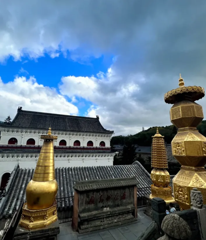 菩萨顶黄瓦一片,是清代皇帝来礼佛落脚的地儿,台阶陡,走到上面风一吹,心就静了。