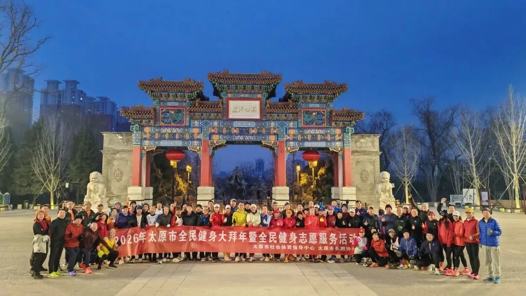 晨曦初露,迎泽湖畔薄雾轻笼。正月初一清晨7时,迎泽公园北门已是人声鼎沸。由康比特友情支持的太原市长跑协会“2026全民健身大拜年”活动在此举行。百余名跑友积极响应市体育局的大拜年号召,以矫健身姿,为古城龙城献上新春第一道跃动的风景线。