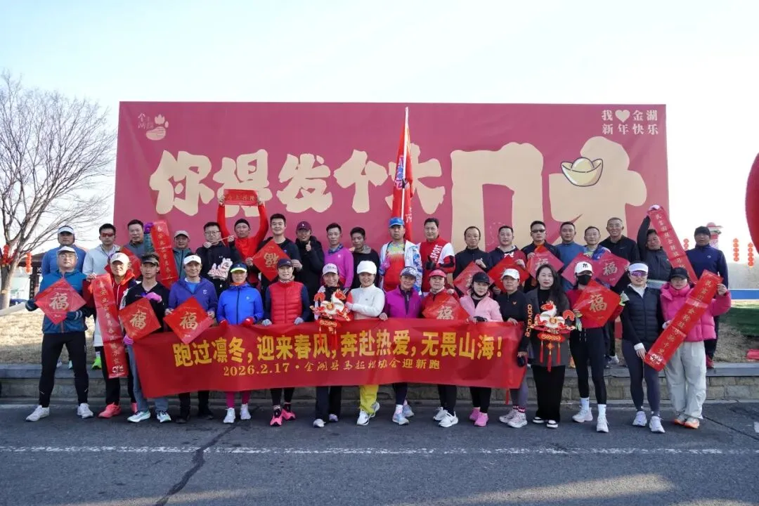 “全民健身大拜年,欢乐祥和过新年!”铿锵有力的口号声中,一张张笑脸定格于新春首张合影。随后,两列整齐的奔跑长龙破晓而出,“春风得意马蹄疾”——迎着农历新年的第一缕曙光,用铿锵步伐丈量新春的希冀。