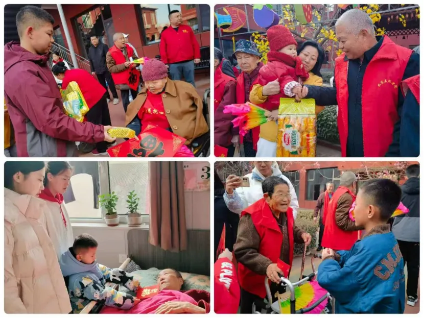 “爱心献礼”环节成为活动最动人的瞬间。小志愿者们主动拿出自己的压岁钱,细心包成“爱心红包”,恭敬地送到老人手中,用稚嫩的童声送上新春祝福。这一暖心的“反向祝福”,不仅让孤寡老人感受到隔代亲情的天伦之乐,更让敬老爱老的种子在青少年心中深深扎根,实现了“关爱下一代”与“敬老助老”的双向传承。