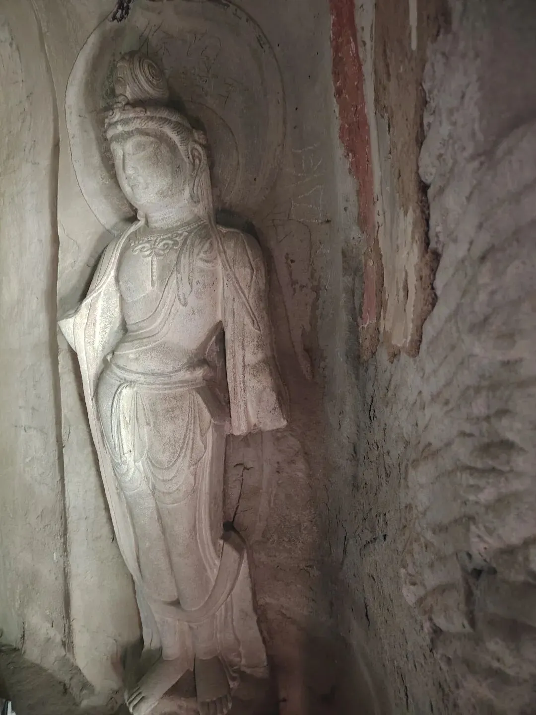 几个看的景色景点,最喜欢天龙山石窟,也许是因为访问它首先得驱车不易,也许是因为喜欢山,也许是因为一路的游人太少。走到山底,到文创店和老板聊天才知道,大雪交通不便,到石窟的公交车停运,我是打车上山不知。路上十个人不到。独享了一座山,石窟,雪和猫咪。