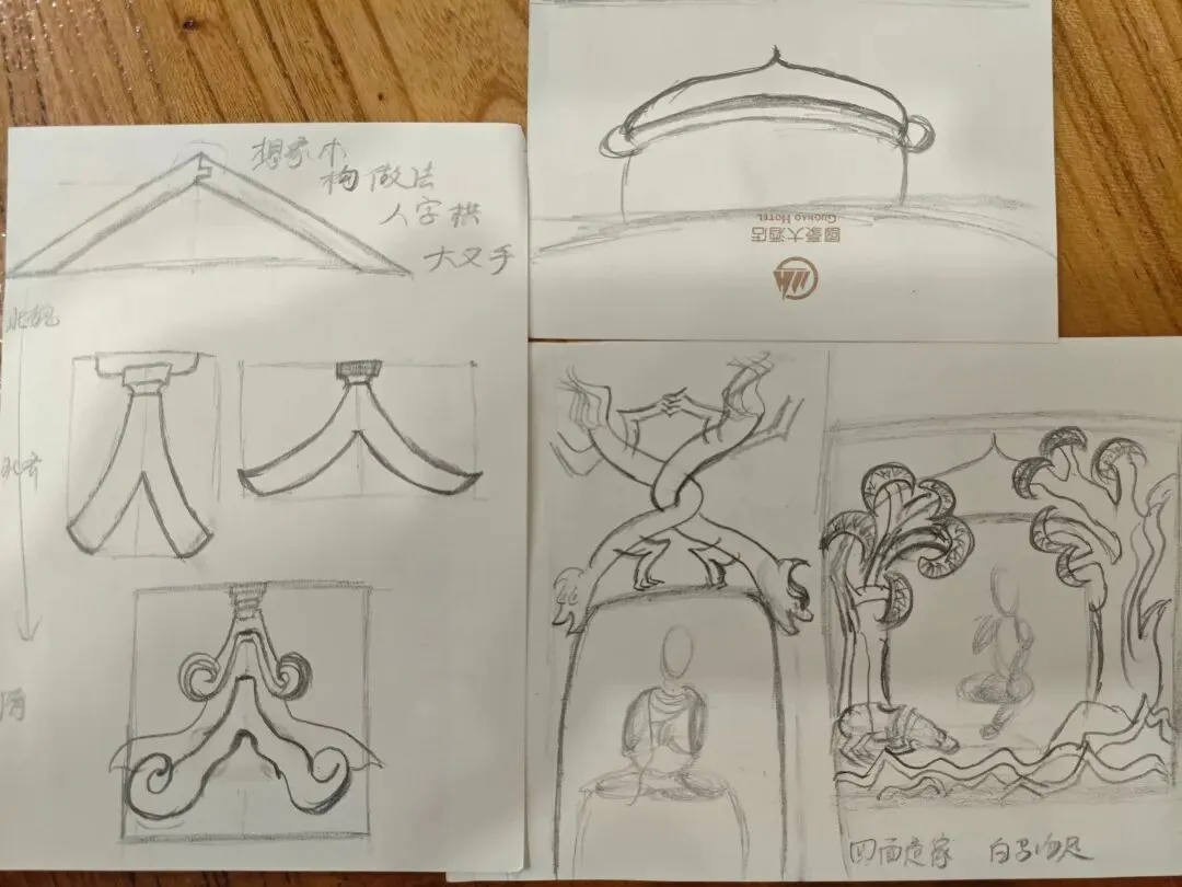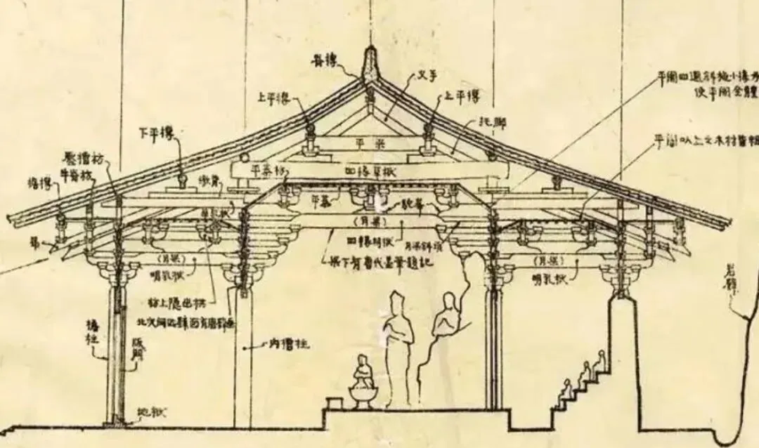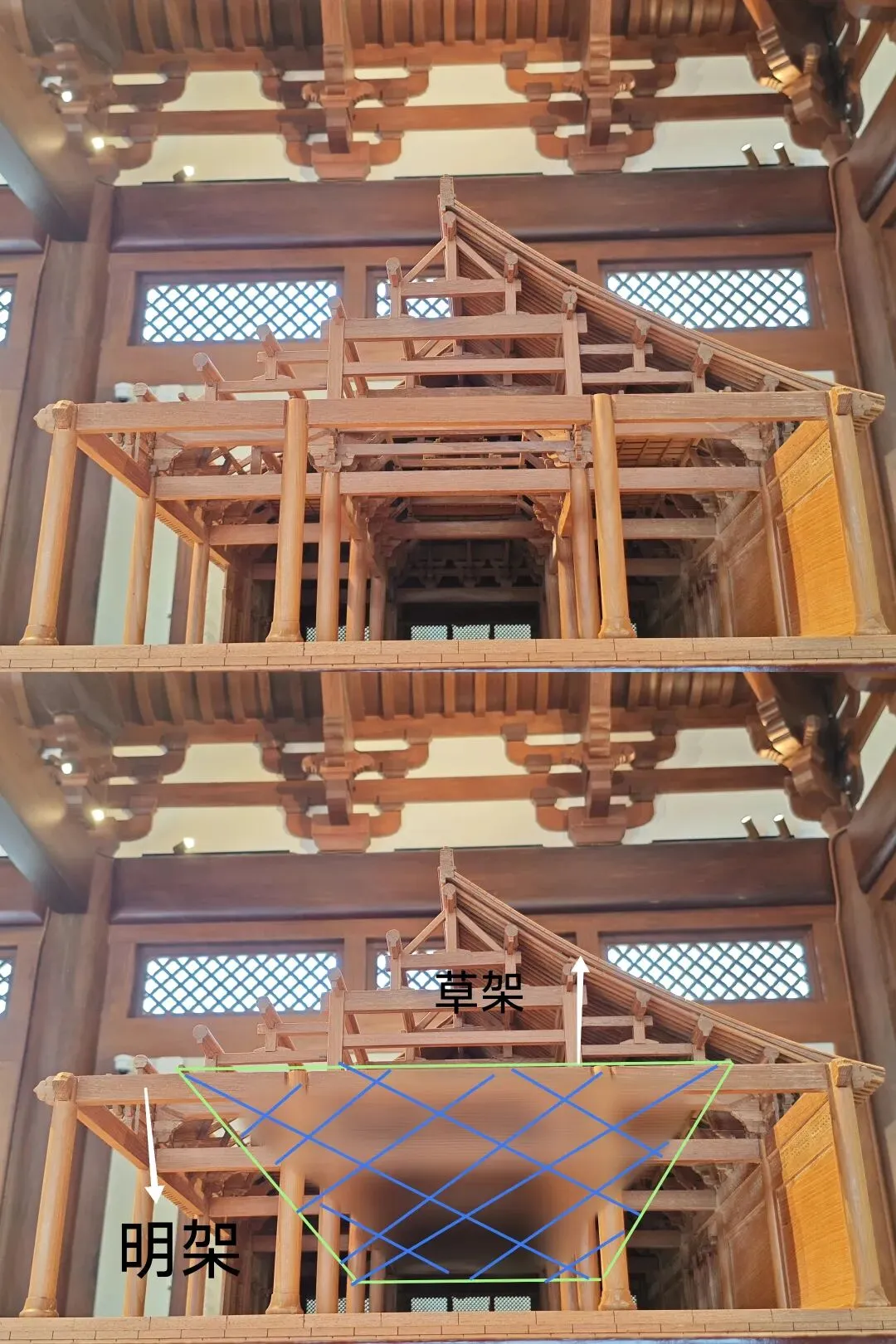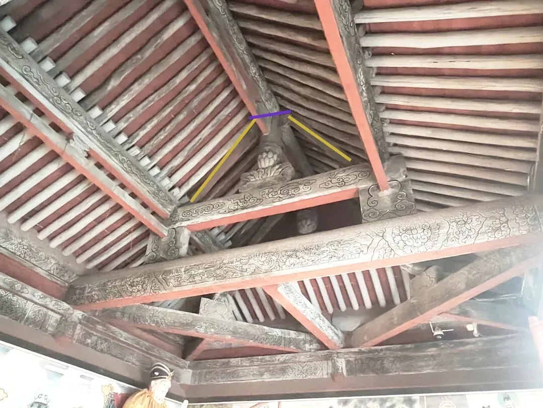 叉手交点位置比唐代建筑略微往上移,到了脊槫两侧。