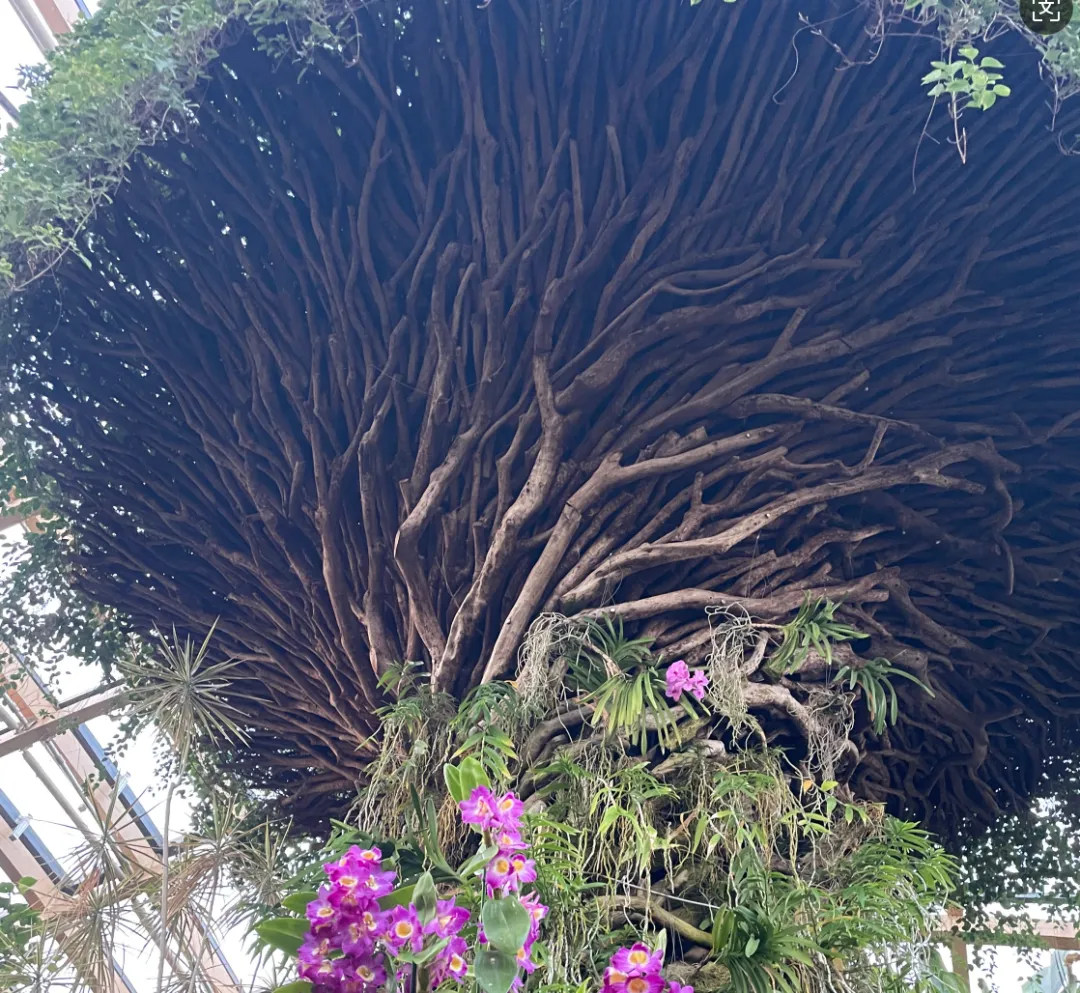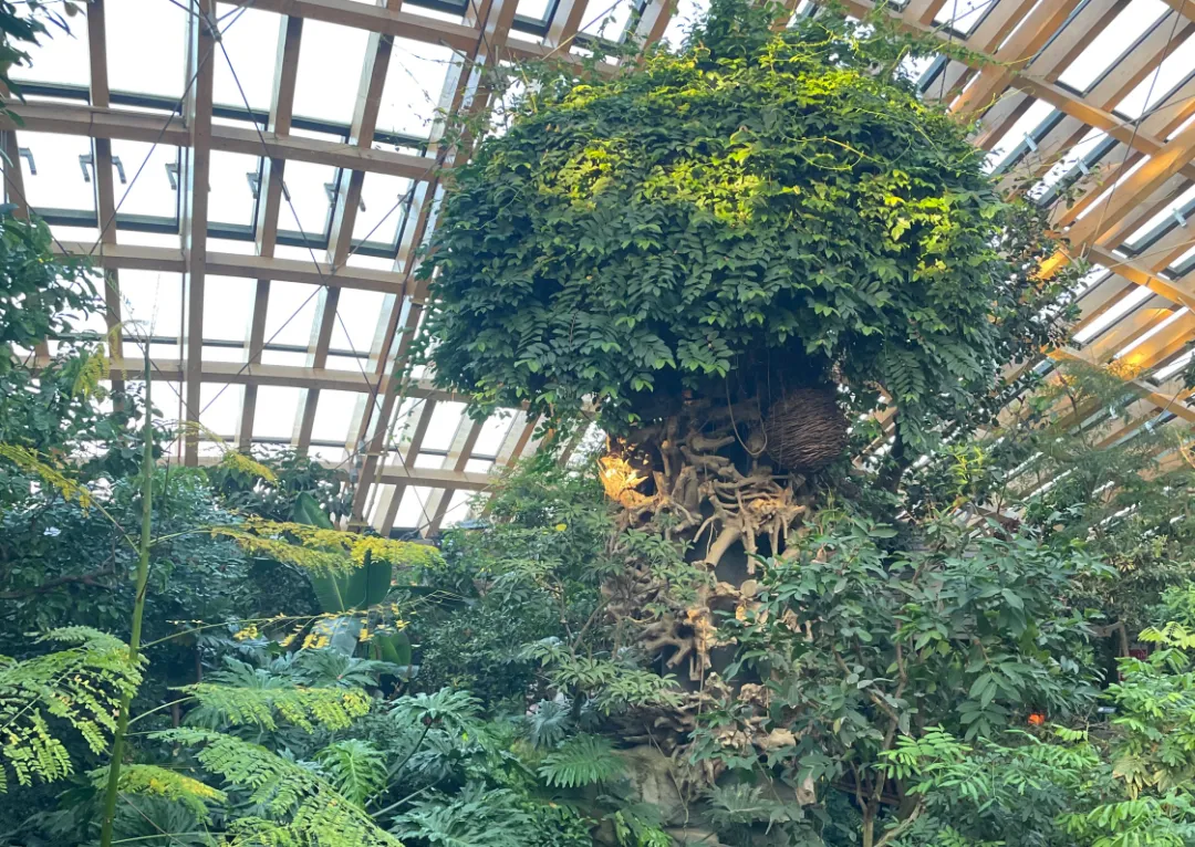 热带雨林馆里的植物确实很让人惊艳,仿佛置身于热带的植物林,也算不虚此行,看到了花草树木(有的听都没听说过,有的是只听说过名字,没见过真面目)。比如:异木棉、曼陀罗、鸡蛋花、菩提树、特别高大的发财树、见血封喉、象腿树等等好多好多,现在能记住的就这些。