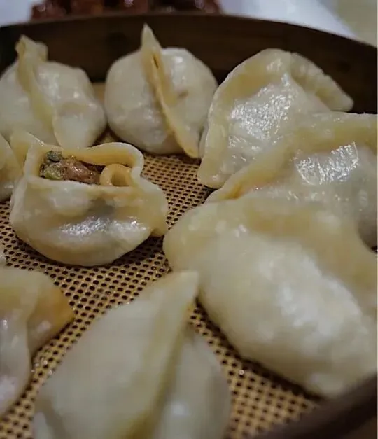 揭开笼屉的瞬间,热气蒸腾,松香混合着肉香扑面而来。夹起一个,皮儿半透明,隐约可见内里粉红的肉馅。轻咬一口,汤汁迸溅,羊肉的鲜甜在口中绽放,没有丝毫膻味。