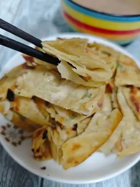 在太原的街头巷尾,你总能找到卖烙饼的小摊。两块钱一张,对折装在纸袋里,趁热咬一口,“咔嚓”一声,酥皮碎裂,热气带着葱香涌出。再配一碗小米粥,就是最地道的太原早餐。