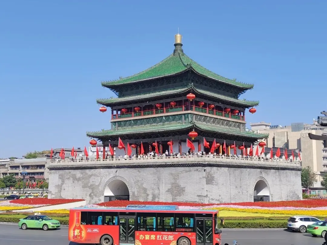 10月3日上午打卡西安钟楼和鼓楼,游玩回民街,然后前往大雁塔,午饭后打卡大雁塔和观看音乐喷泉,游玩大唐不夜城;