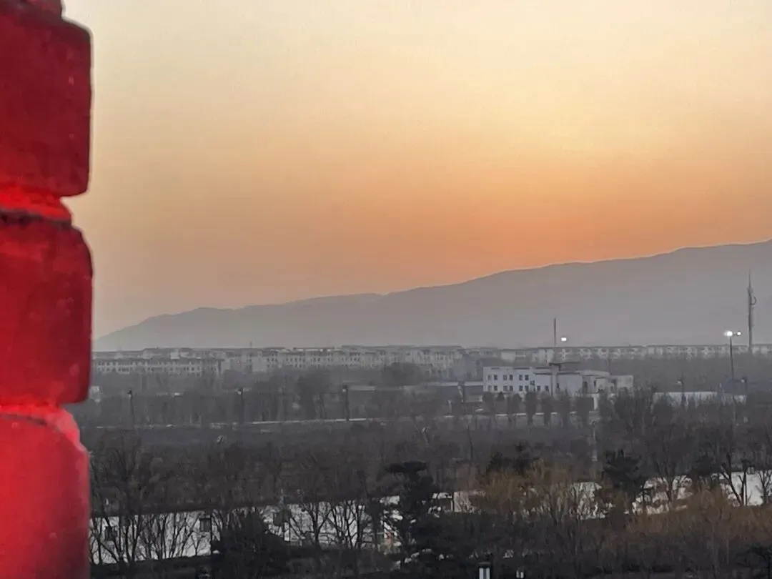 城墙竟也可以免费登了。放眼望去,空旷的垛口边,只有我们俩,眼下是灰瓦连绵的屋顶,远处的西山在暮霭中泛起层层暖意。