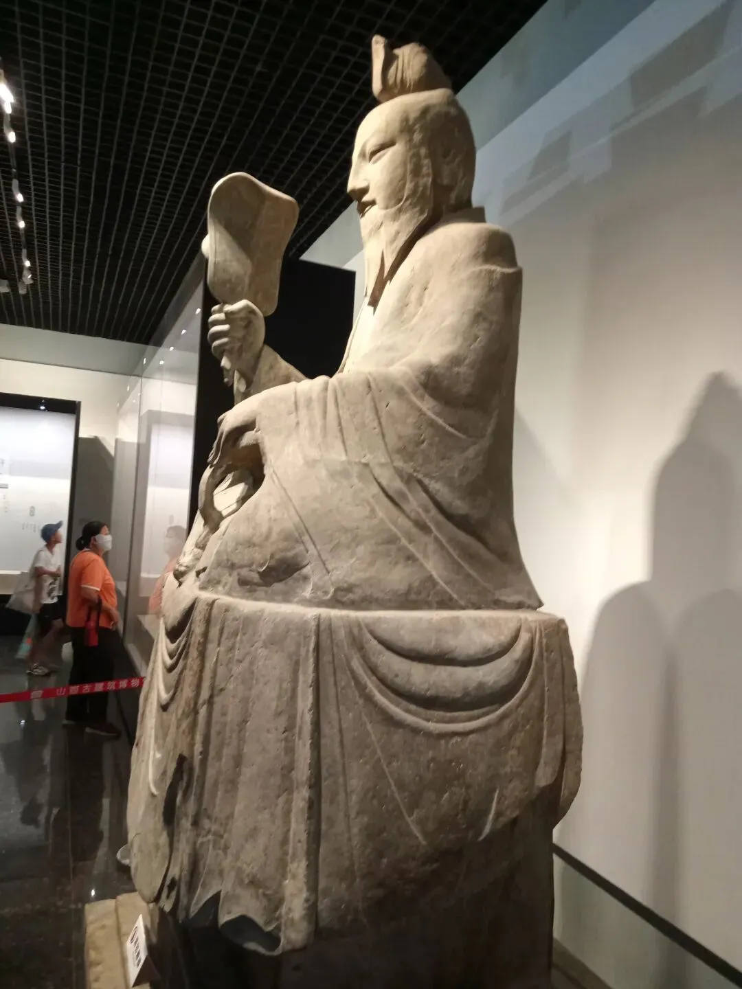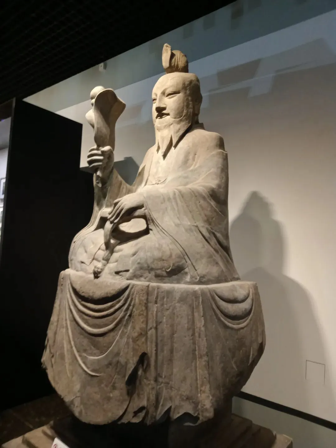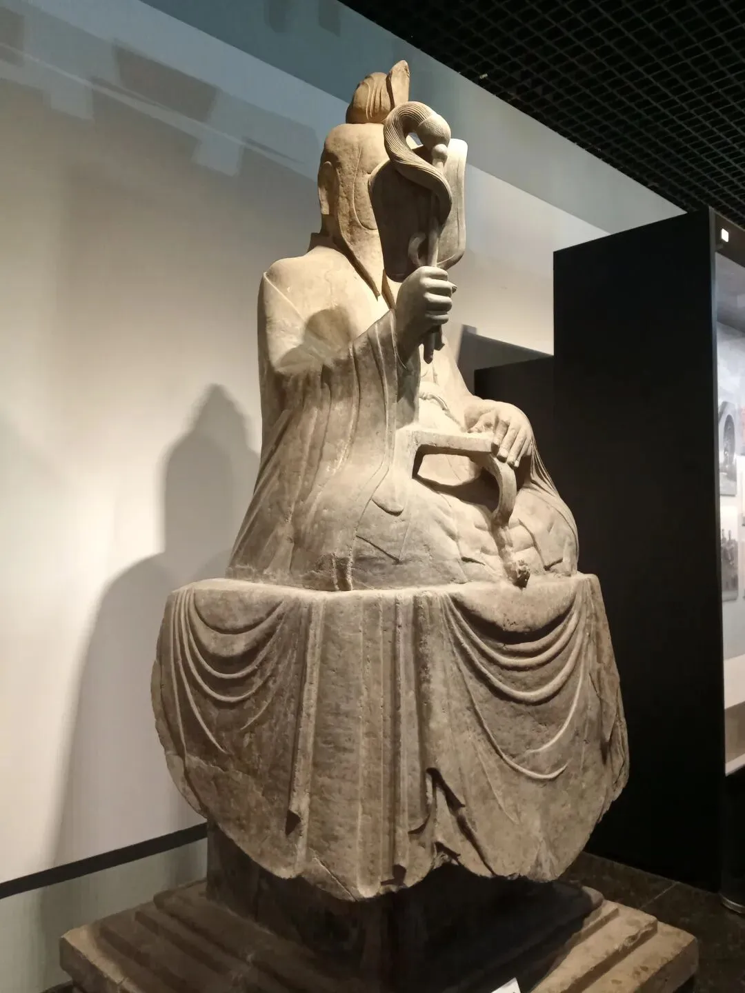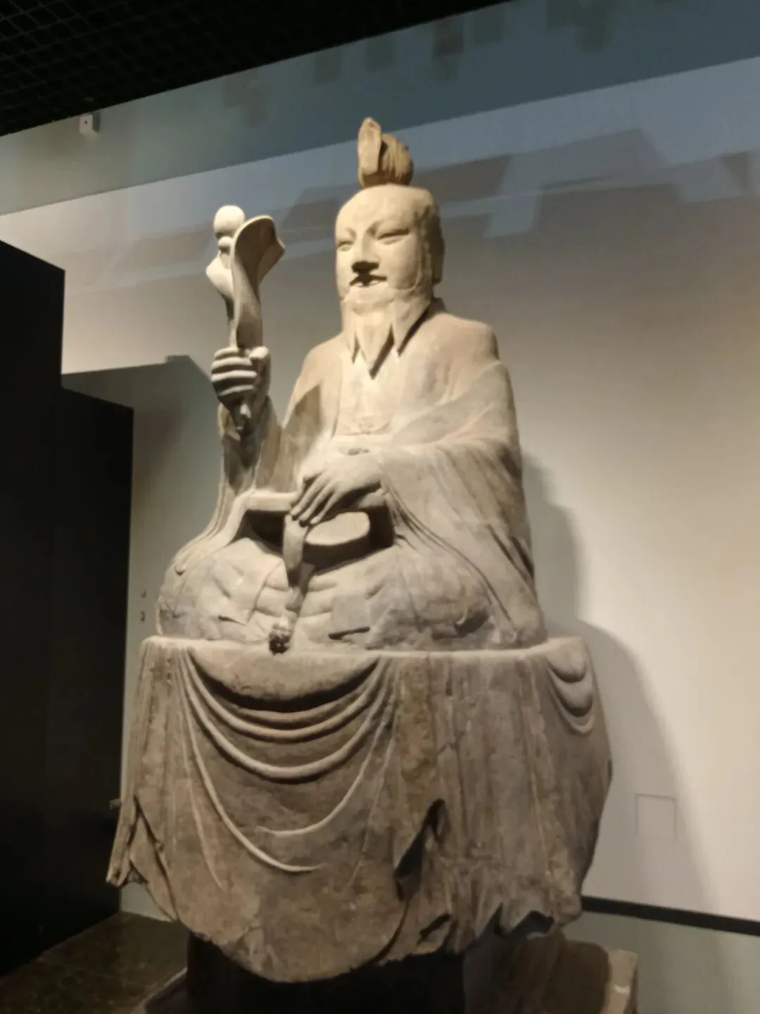 常阳天尊像造型丰颐,线条圆润流畅,具有典型的唐代造像风格。天尊头戴莲花形冠,面相丰颐,细目微眯,长髯垂胸,神态安详慈和。天尊身着宽大道袍,盘坐于长方形石座之上。右手执芭蕉扇和拂尘,左手凭几而放,颇具仙风道骨之韵。石像面容饱满,衣纹清晰流畅,气度不凡。基座四周线刻着莲花、忍冬、仙鹤等祥瑞纹样,底座正面刻天尊像铭并序,两侧及背面线刻弟子道士像和供养人姓氏。2002年国家文物局发布的《首批禁止出国(境)展览文物目录》中,常阳天尊像以其独特的历史和艺术价值成为首批禁止出国(境)展览文物之一。
